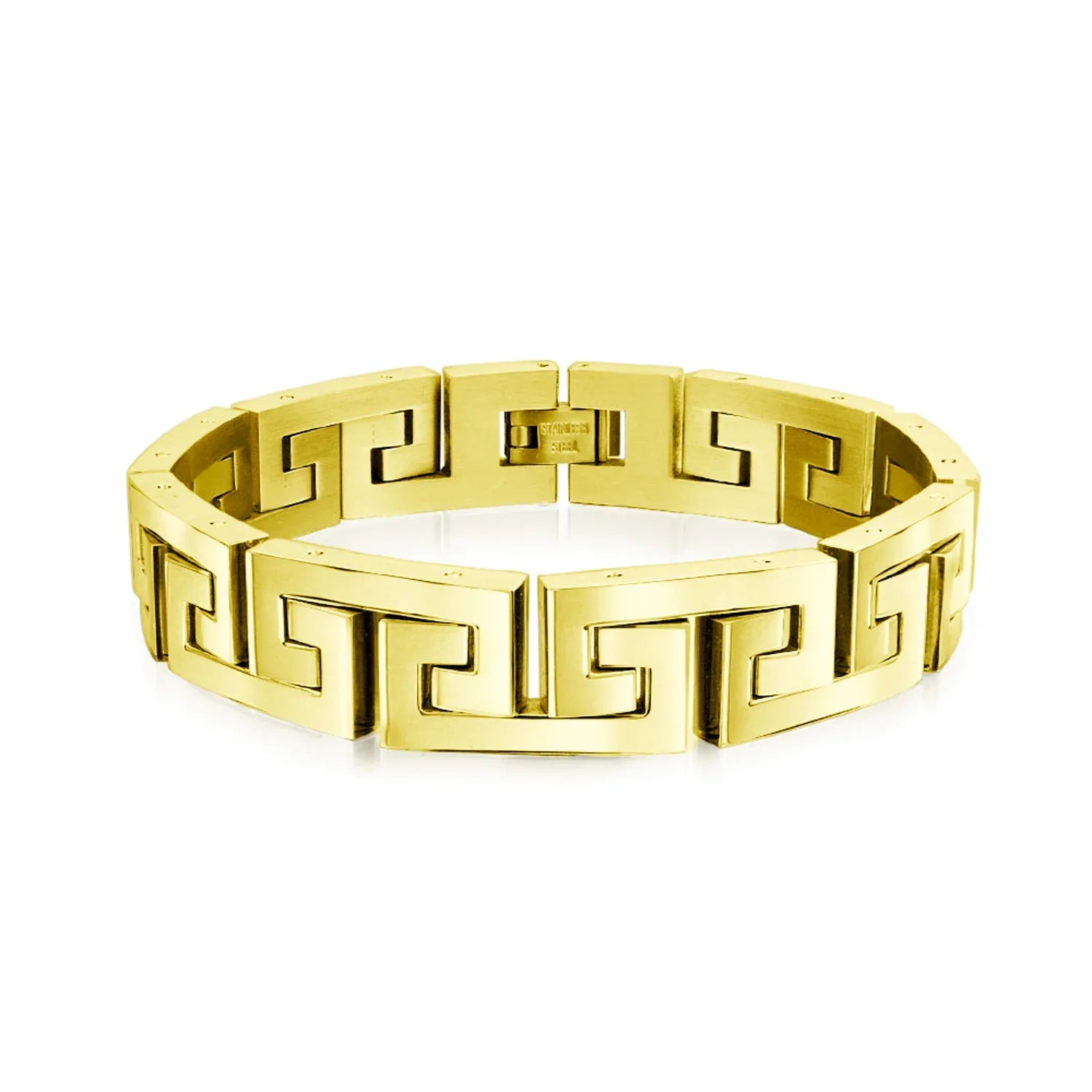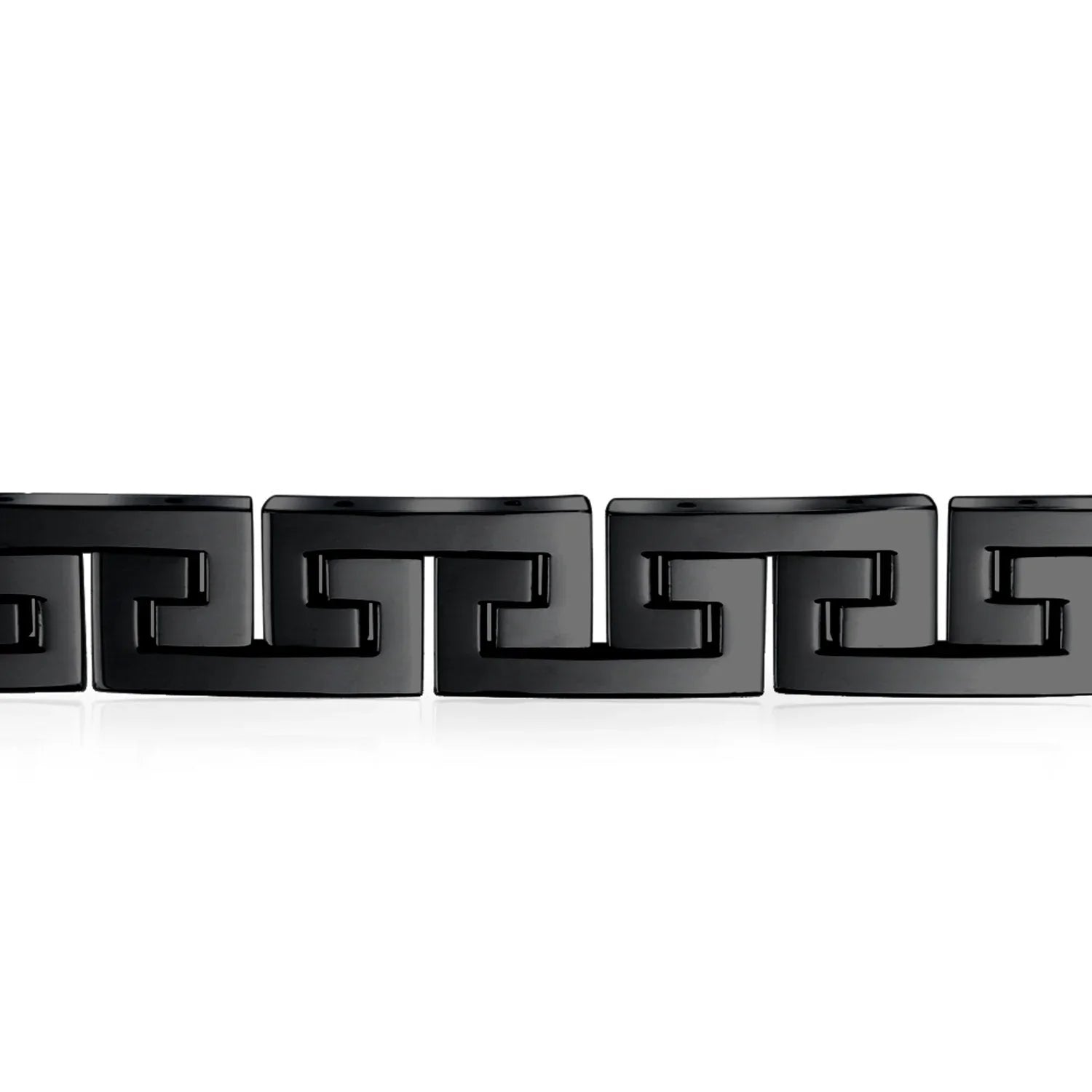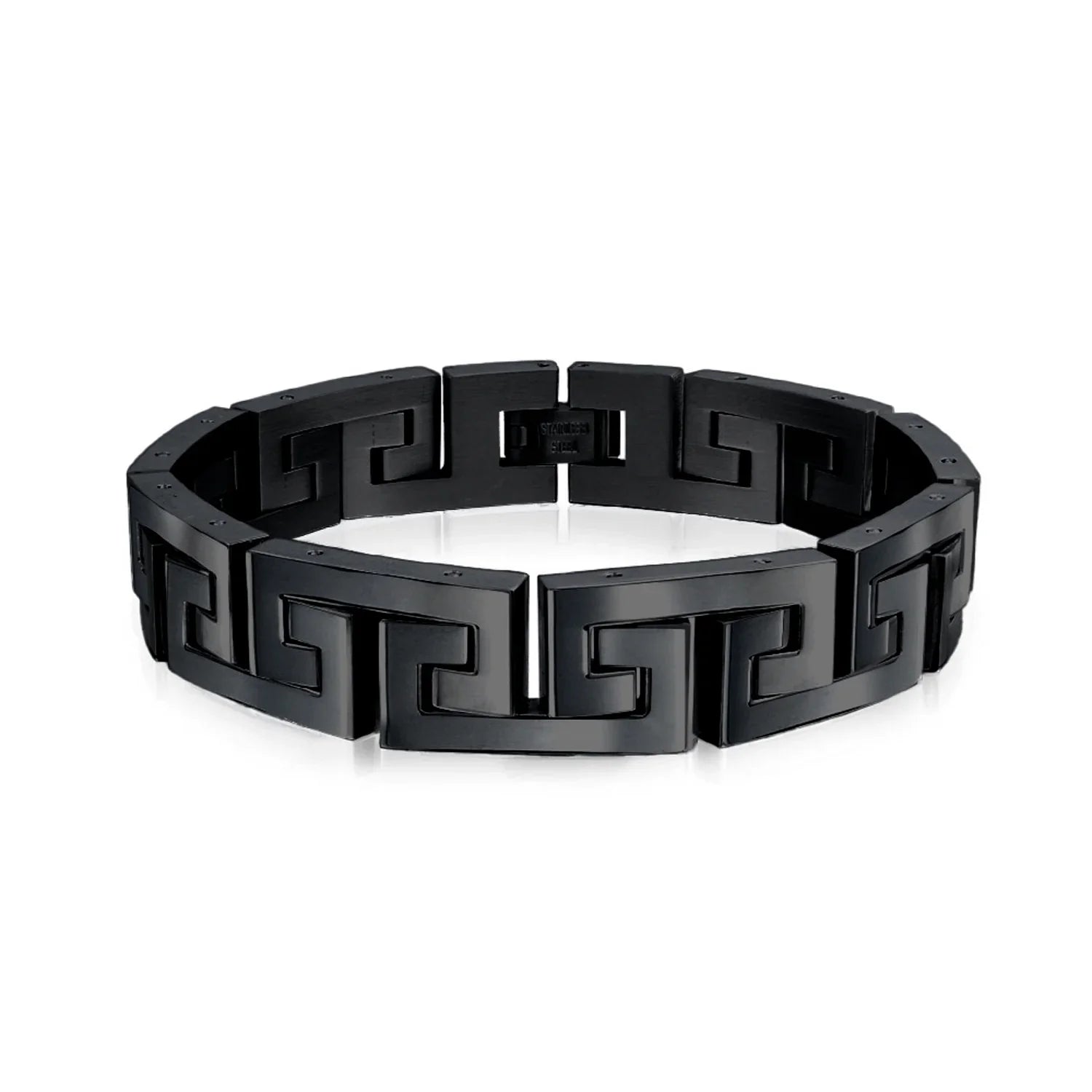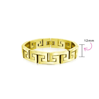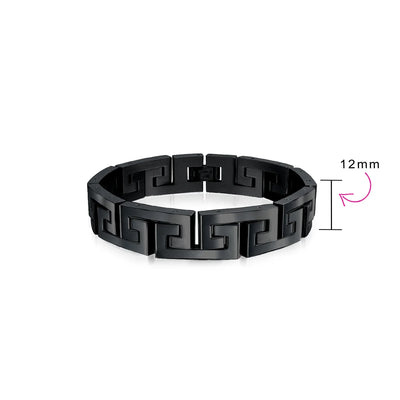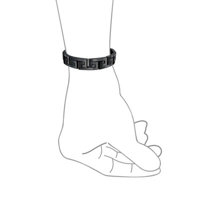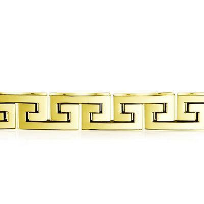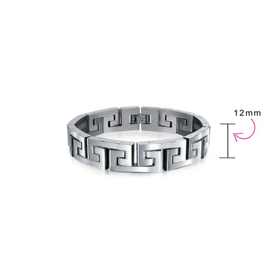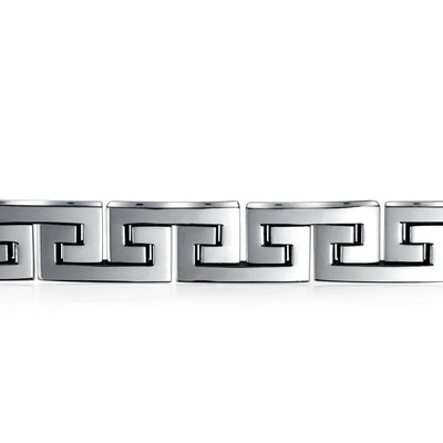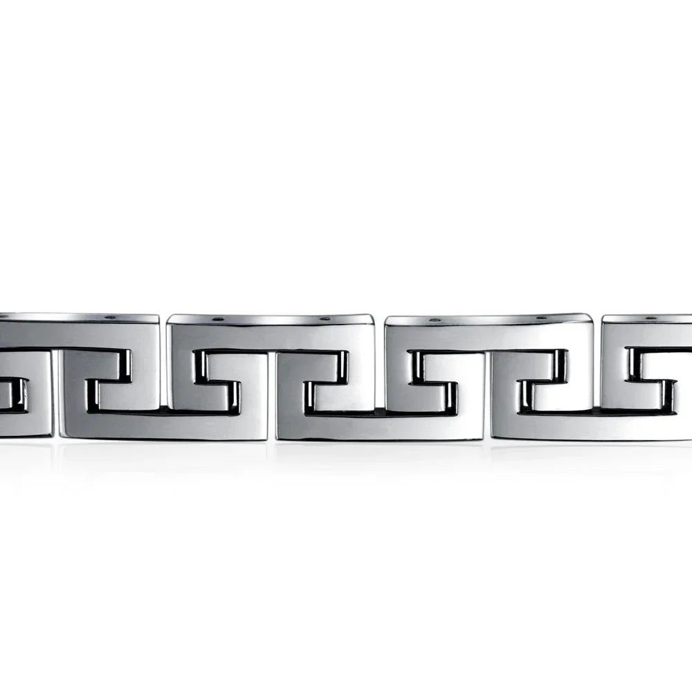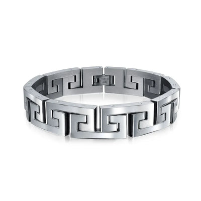 - Introducing the Infinity Key - a timeless symbol of everlasting connections and cherished relationships. Crafted with meticulous attention to detail, this masculine mens link bracelet features a captivating link Greek key design. Elevate your style with its polish and refined finish, making it the perfect accessory to complement any day or evening ensemble.