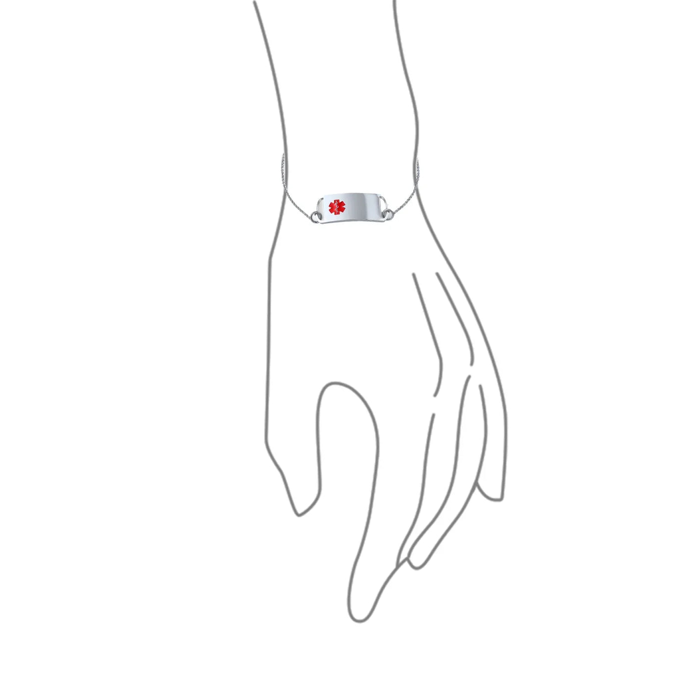 Name Style Tag Medical ID Bracelet Silver Tone Stainless Steel Bolo Chain Thin