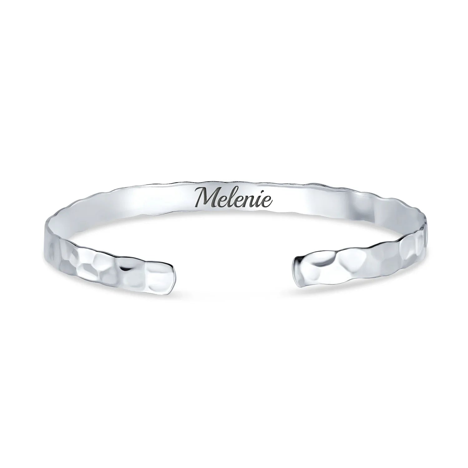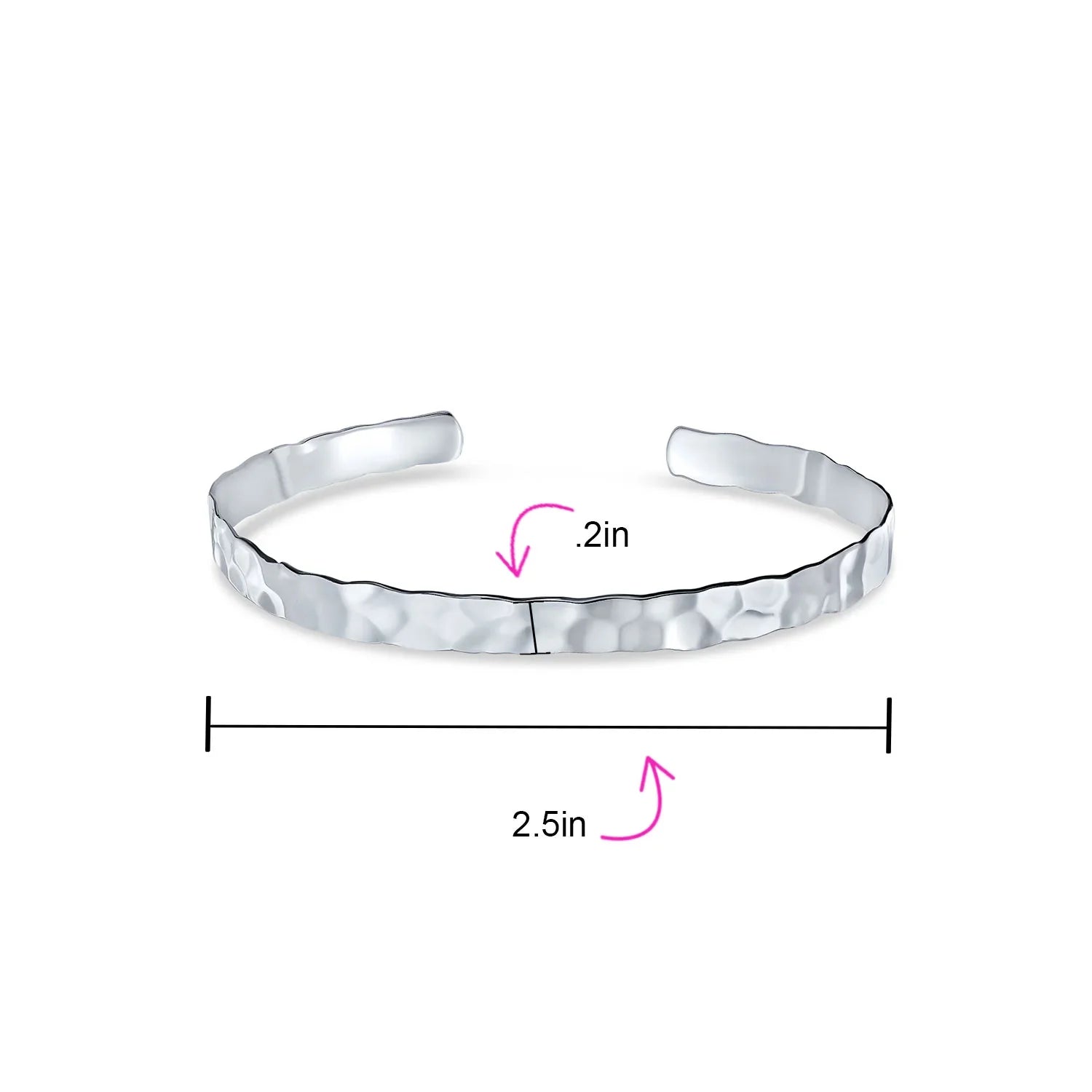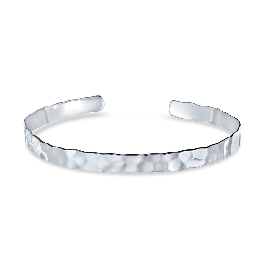 - Elevate your style with this chic 925 sterling silver cuff bangle bracelet . The flat hammered design adds sophistication. Wear solo for elegance or stack for a trendy look. Mix with other sterling silver jewelry for a fashion-forward ensemble. Add this timeless, versatile accessory to your collection.