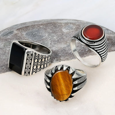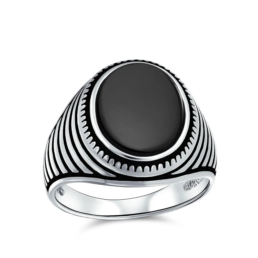 • Black oval onyx rings for men are a must-have for the stylish man. This antique-style men's jewelry is smooth, polished, and substantial. Guaranteed to draw attention, it features engraved geometric lines for added elegance. Perfect for bold and unique Father's Day gifts for your dad, uncle, or brother.
