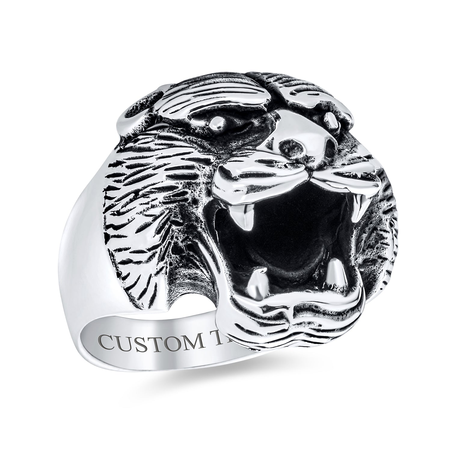 - Solid animal bear ring featuring a 3D roaring bear with open mouth fangs. Intricate detailing enhanced by blackened silhouette is unique and eye-catching design. Perfect accessory for bear lovers or wildlife enthusiasts