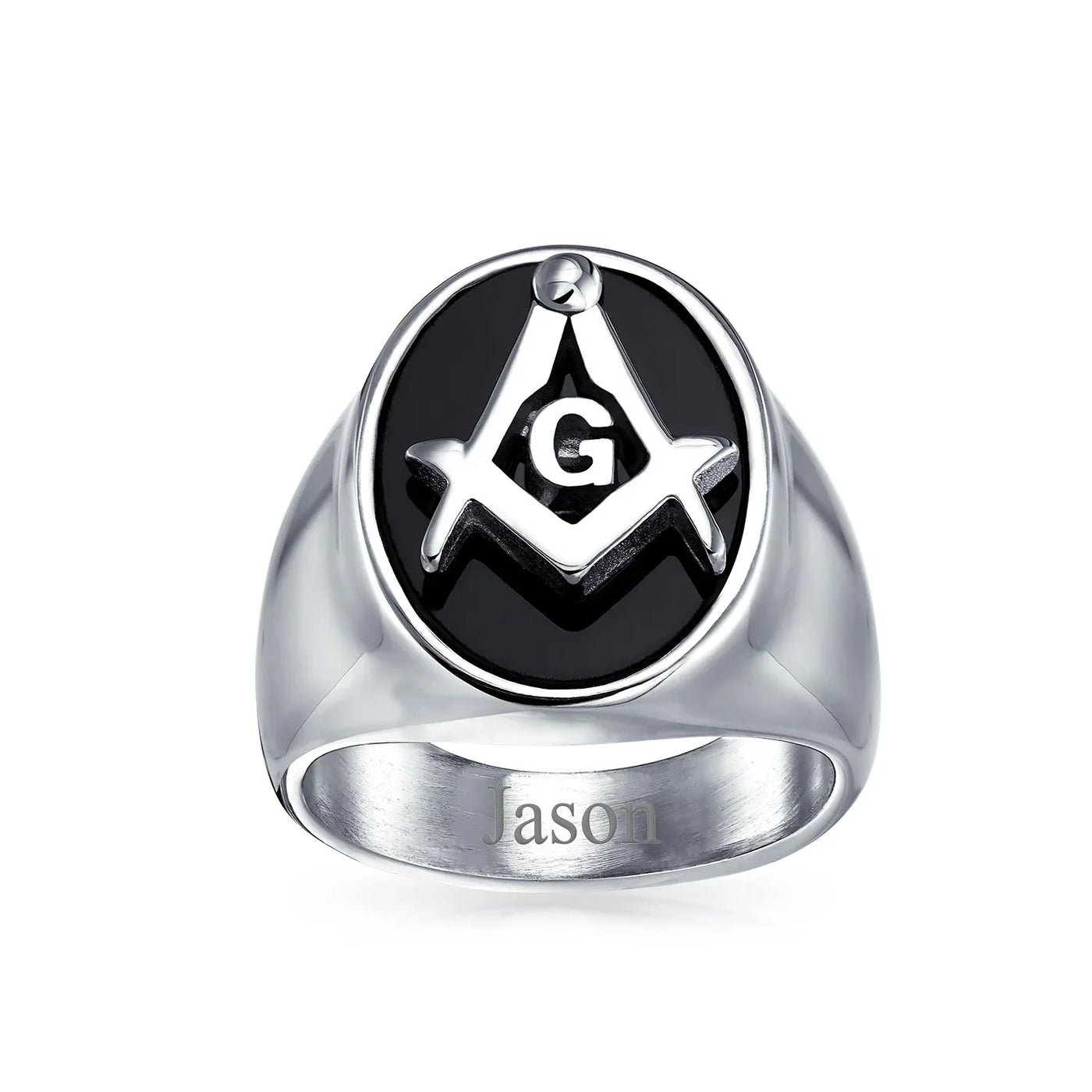 • Our dapper, stainless steel Masonic ring for men exudes bold masculinity. This striking two-tone design features black enamel and lustrous silver-tone stainless steel. The arresting Freemason oval centerpiece symbolizes brotherly love, relief, and truth. This distinctive men's ring is sure to be his new favorite fashion accessory.
