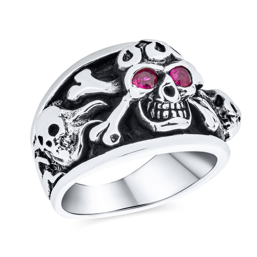 Mens Stainless Steel Punk Rocker Biker Ring with Simulated Red Ruby CZ Eyes