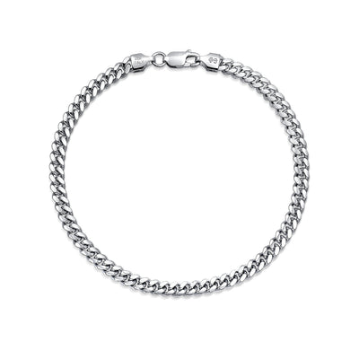 • HANDSOME STYLE - Elevate your look with this masculine chic chain bracelet for men, designed to add a touch of roughed style to any outfit. Crafted with a striking 150 gauge Miami Cuban link chain, this bracelet exudes contemporary appeal. Made entirely of solid lustrous .925 silver, it is a statement piece that will enhance your style.
