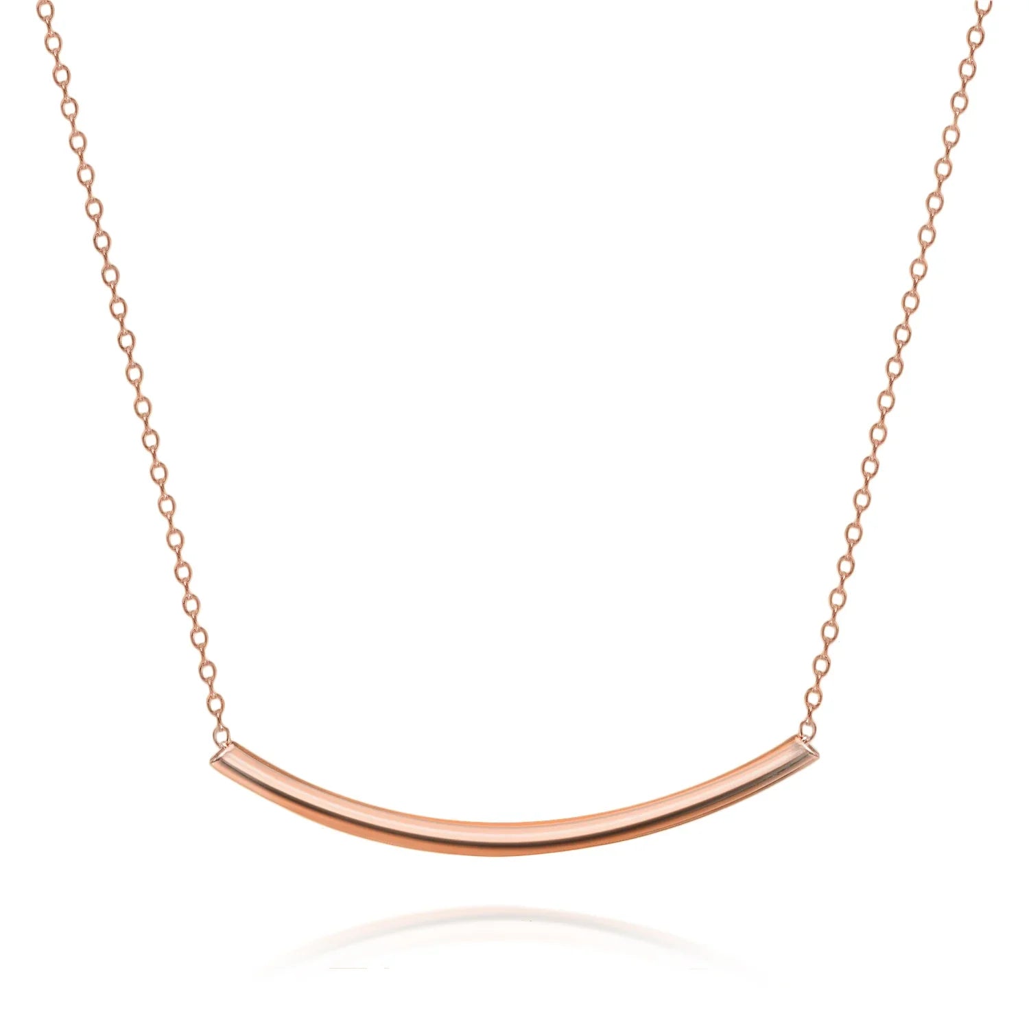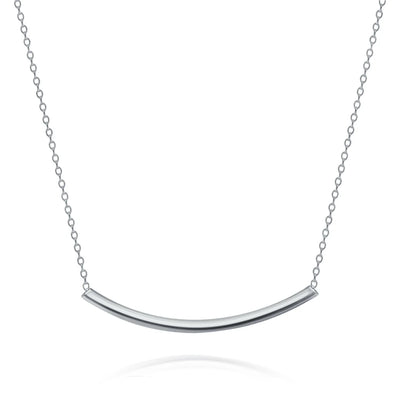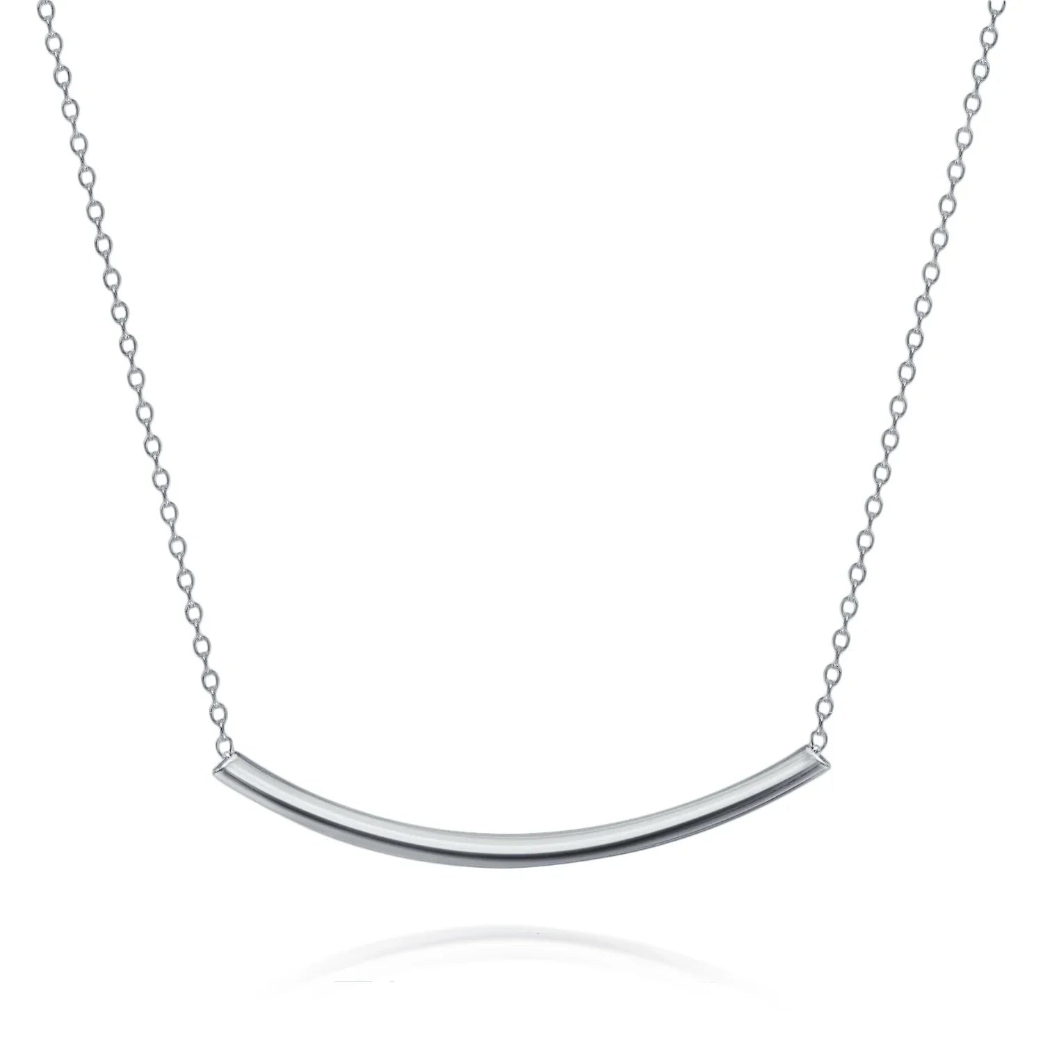 - This chic, shiny .925 Sterling Silver curved bar necklace is perfect for daily wear. Layer it or wear solo. Its slim, curved tube pendant is lightweight, durable, and fashion-forward. A modern favorite among bloggers and fashionistas. Matches every ensemble effortlessly.