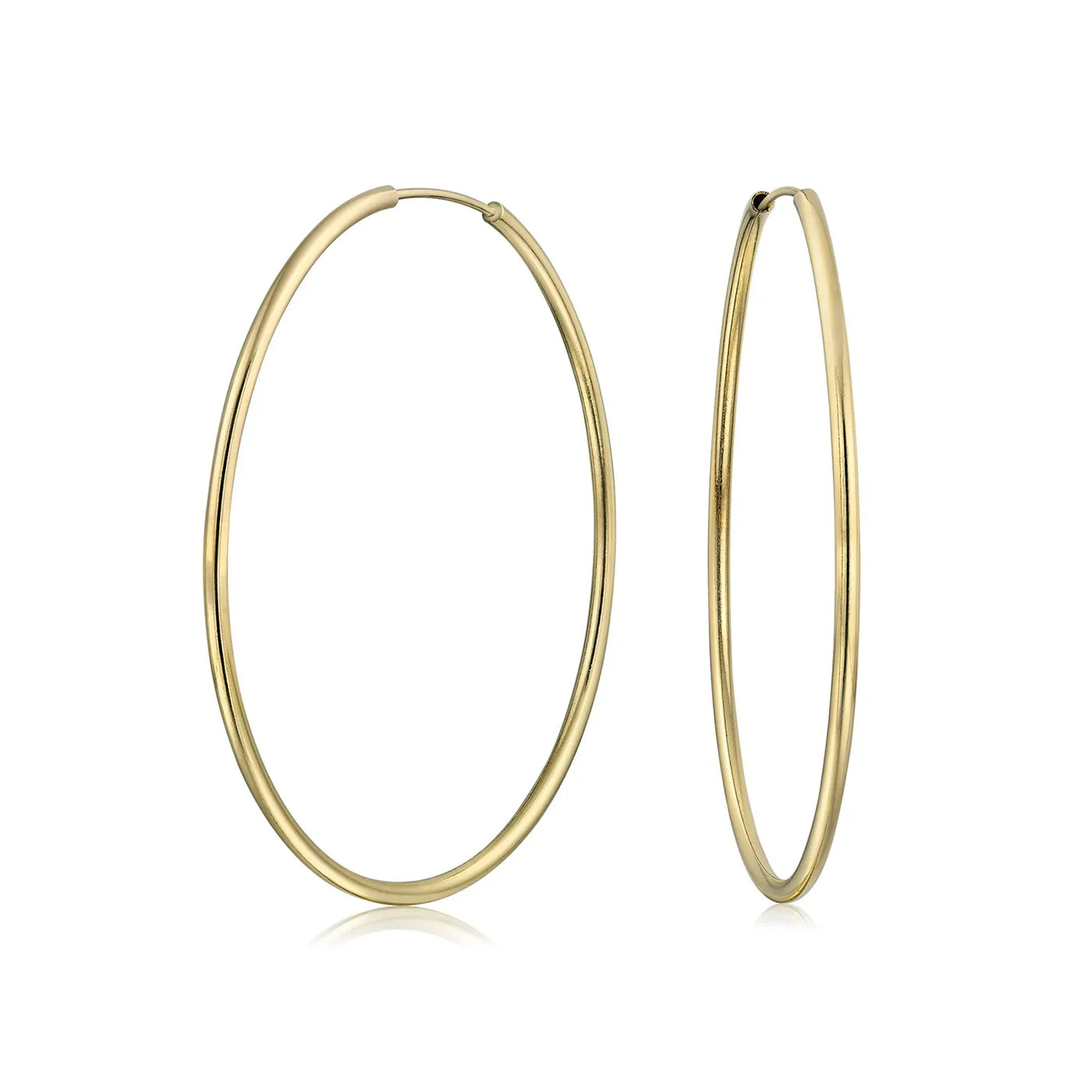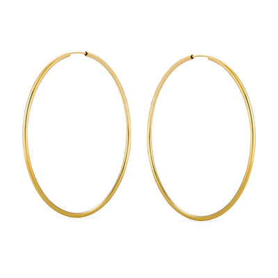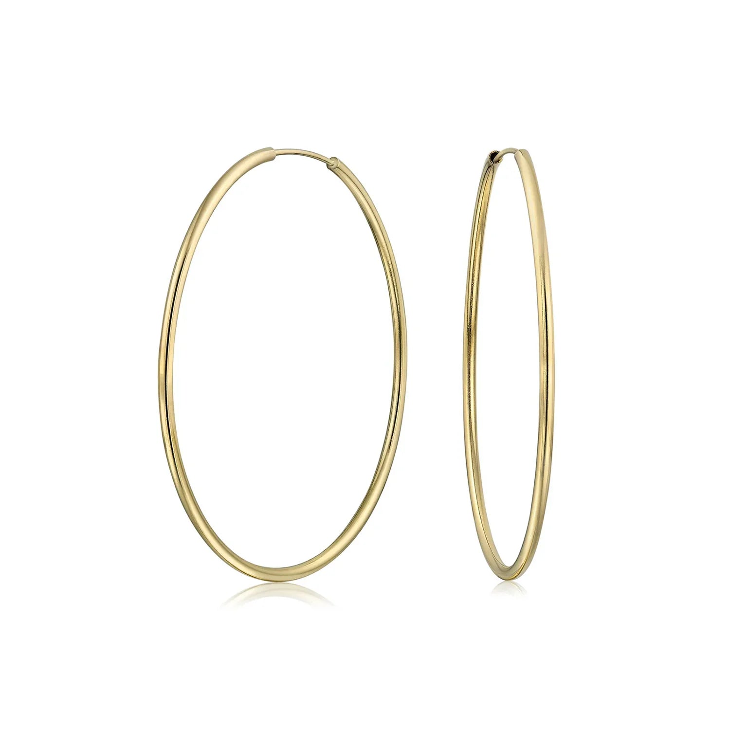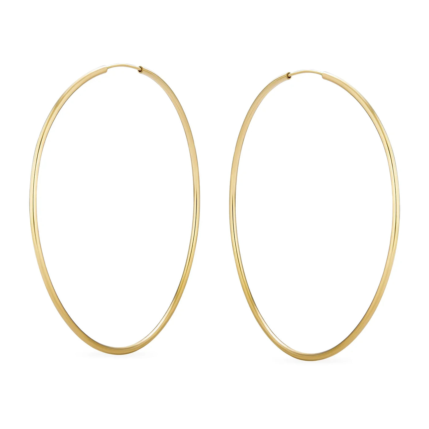 • Discover our dazzling Yellow Gold Plated Brass endless hoops. These large diameter earrings deliver the ultimate wow factor. Trendy and modern, they effortlessly elevate any outfit. Essential for every jewelry box, these fashion-forward tube earrings are a must-have.
