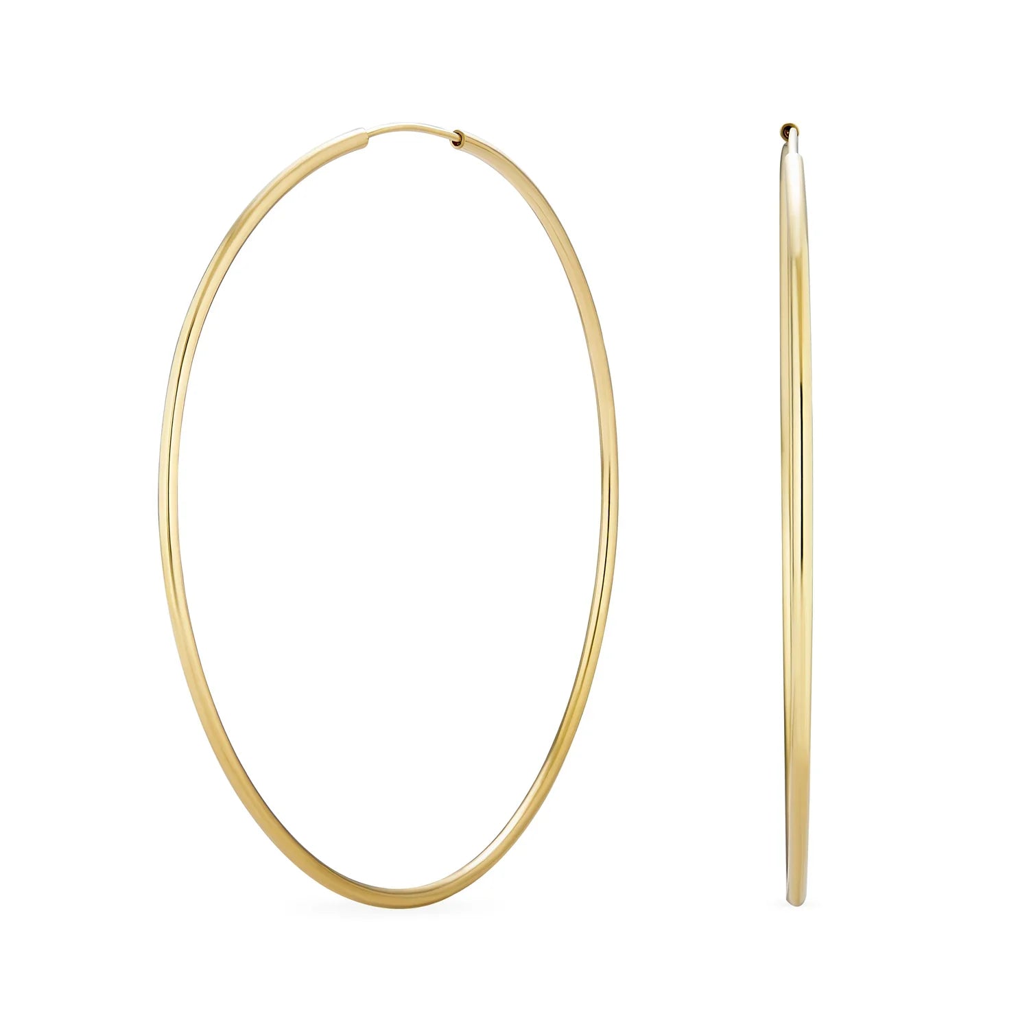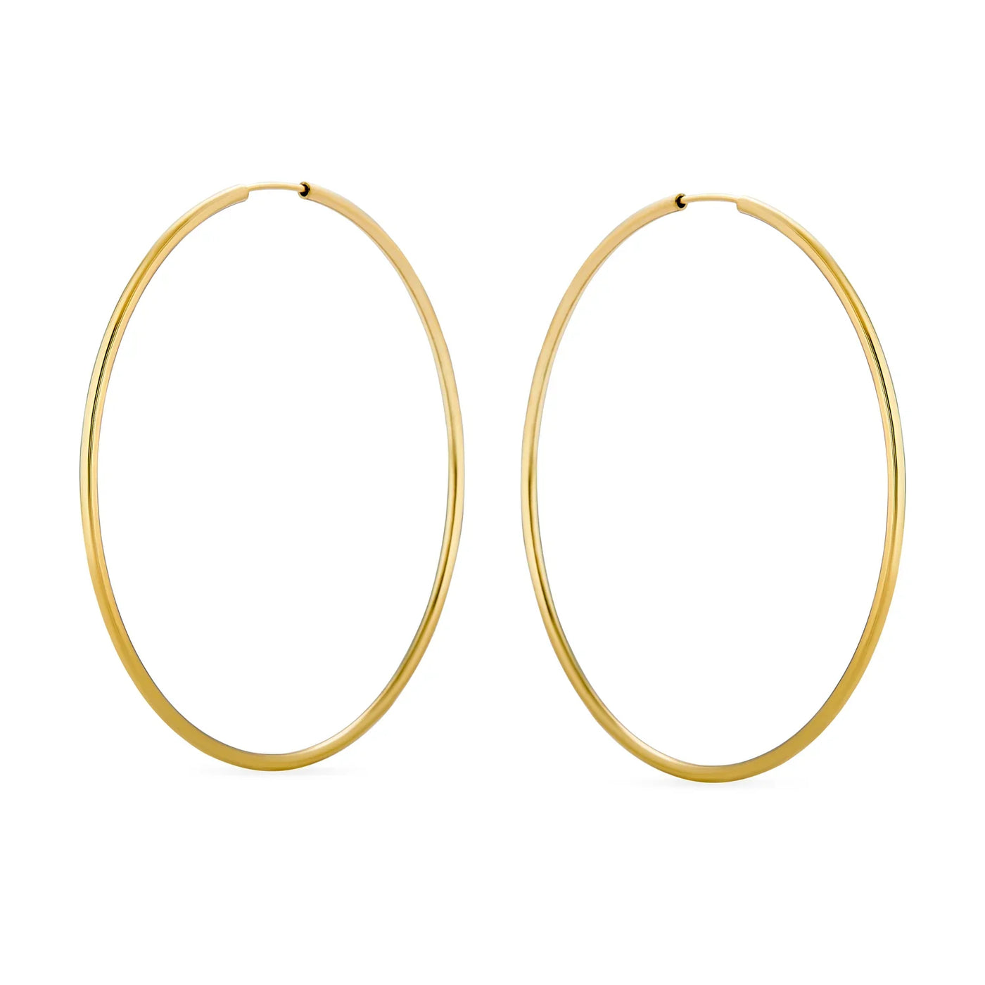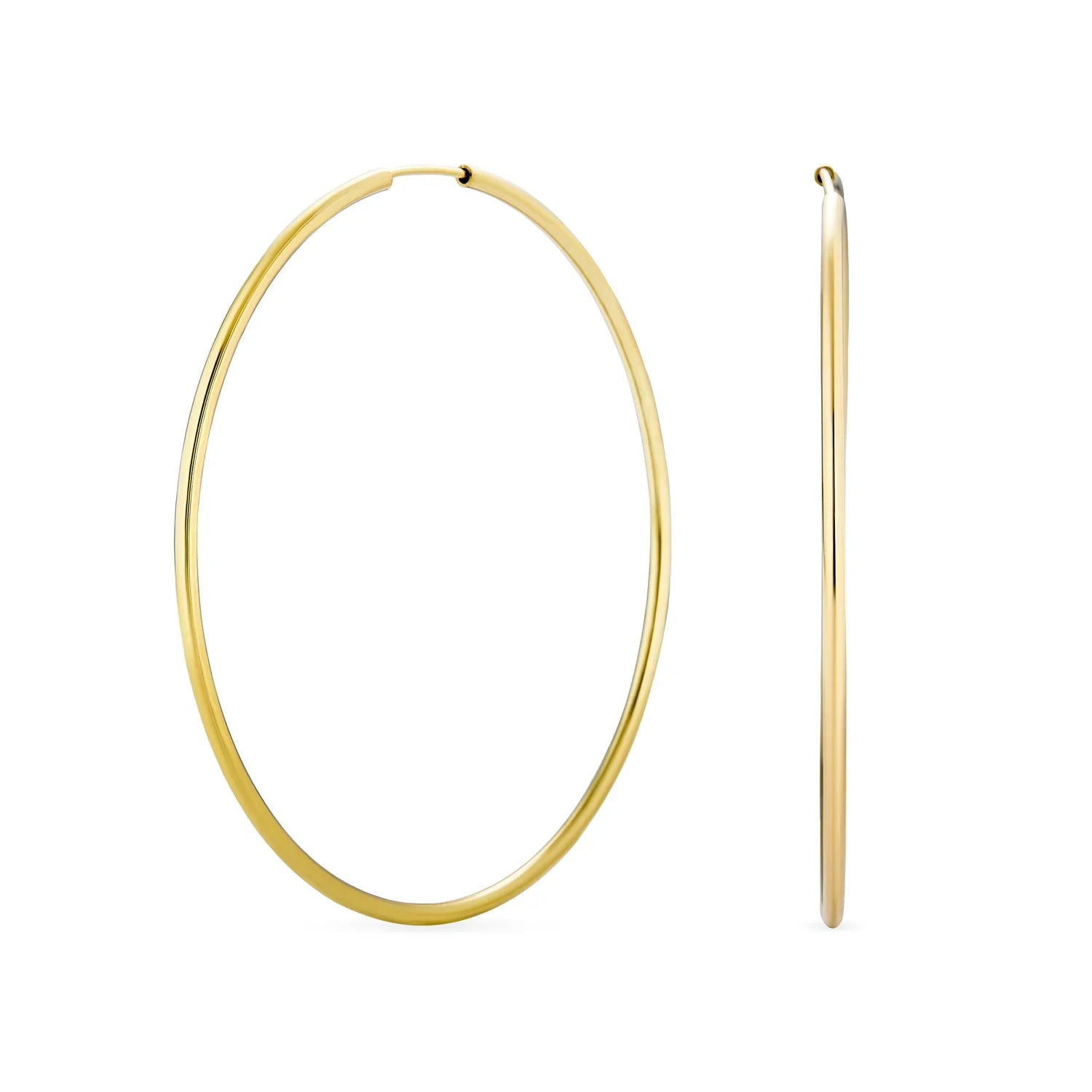 • Discover our dazzling Yellow Gold Plated Brass endless hoops. These large diameter earrings deliver the ultimate wow factor. Trendy and modern, they effortlessly elevate any outfit. Essential for every jewelry box, these fashion-forward tube earrings are a must-have.