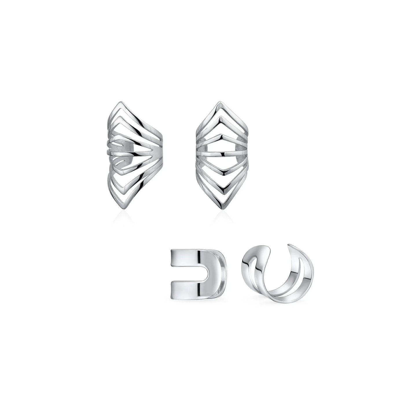 - Add a striking, contemporary accent with these brilliantly designed ear cuff wrap earrings. Openwork 925 silver forms a modern chevron design. These sterling silver ear cuffs for non-pierced ears add edge and shine, perfect for day or night.