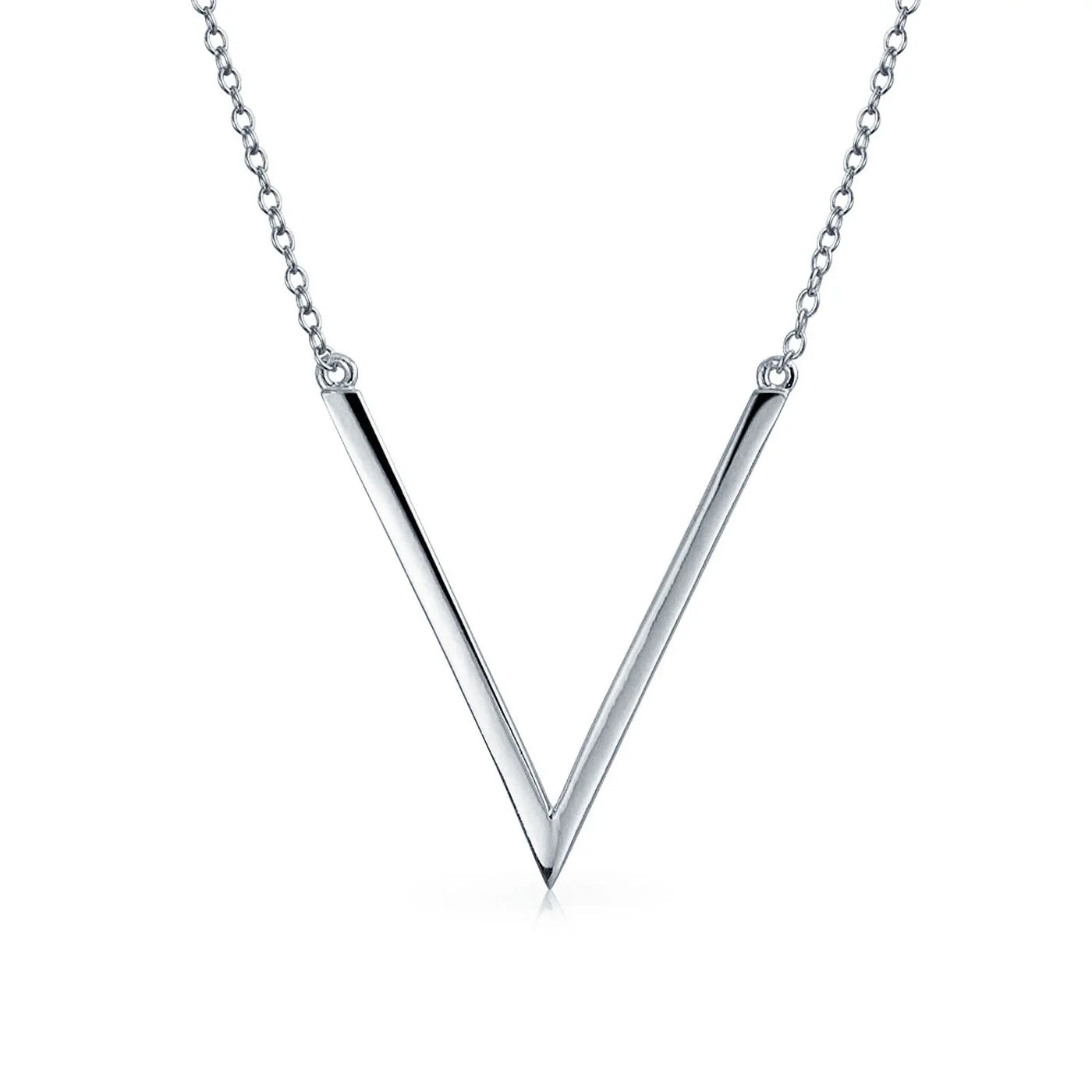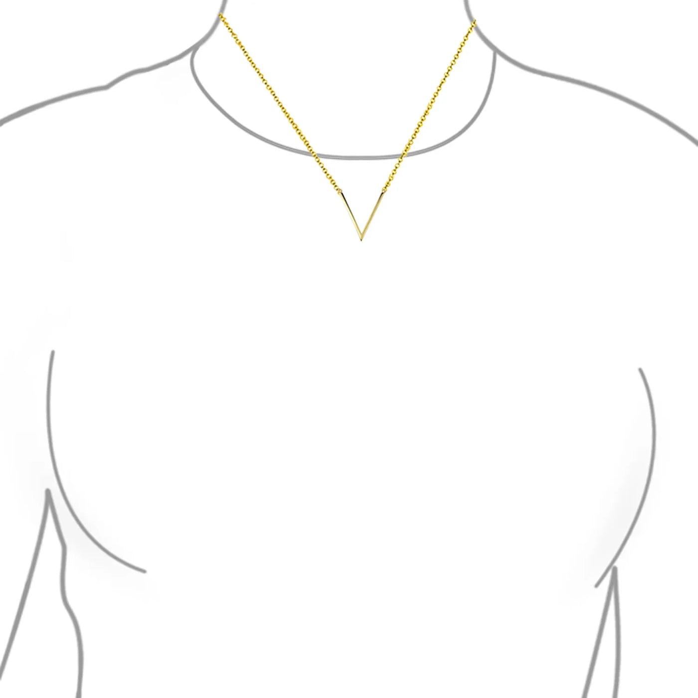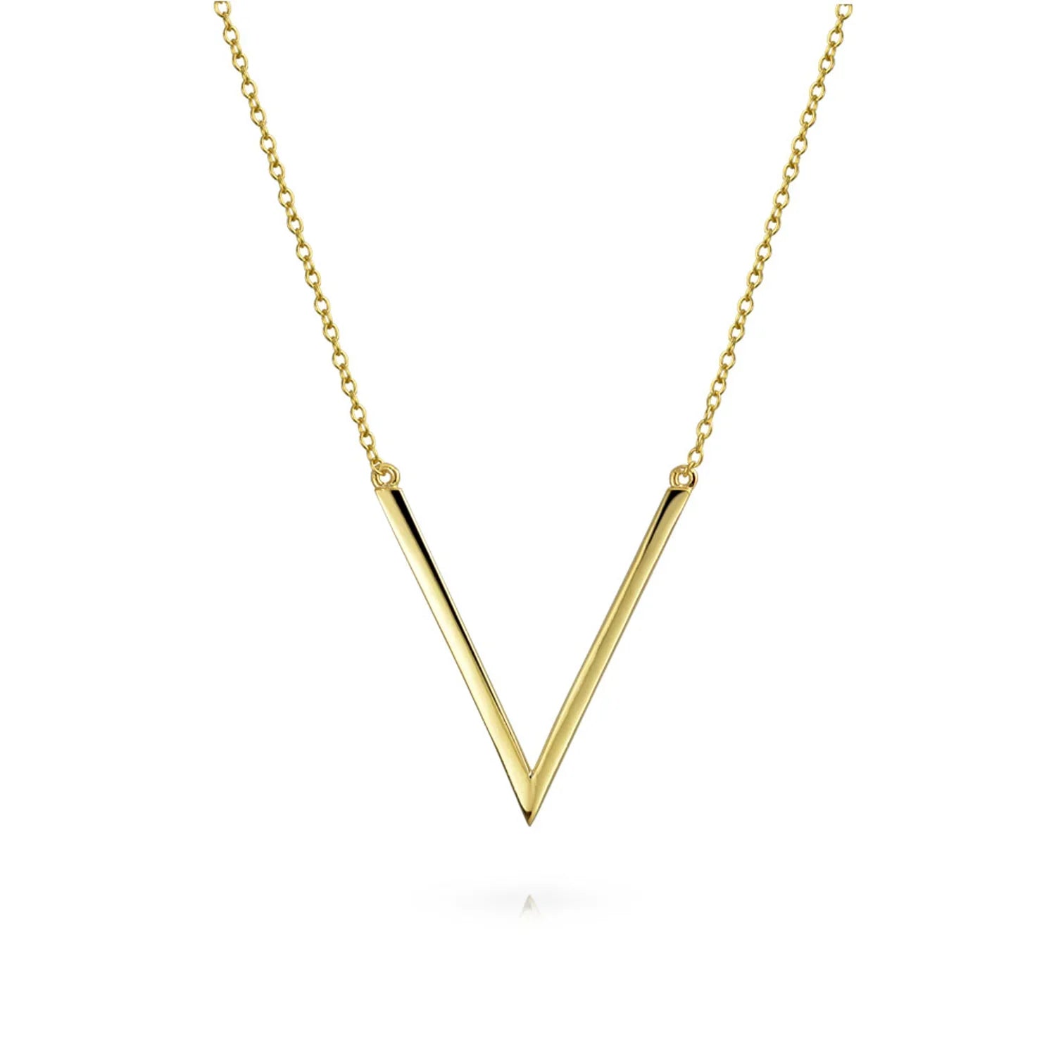 - This elegant V pendant necklace, featuring a luxurious gold plating, is a must-have accessory she'll adore. Perfect for layering with other geometric necklaces, it serves as a versatile 16-inch staple for everyday wear.