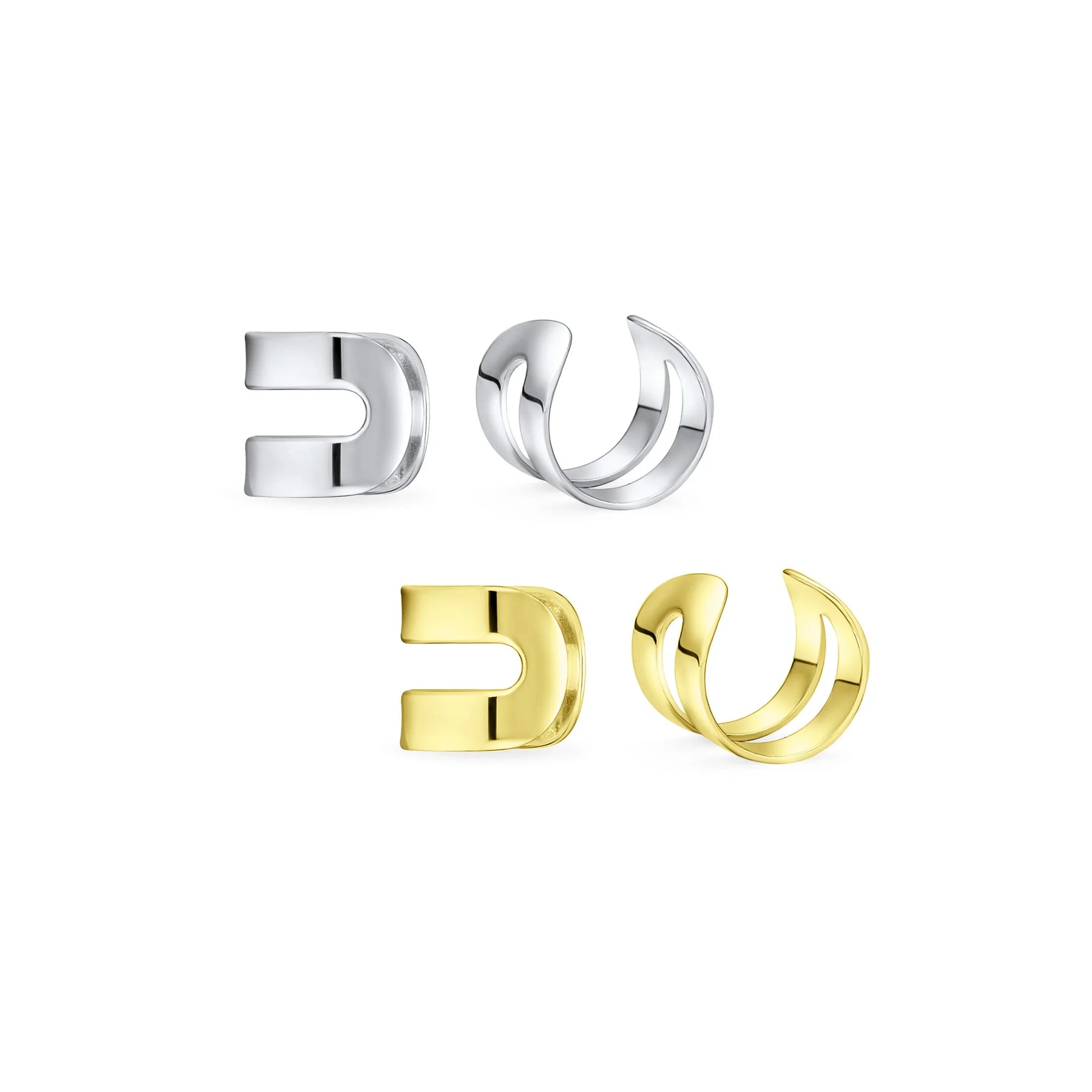 - Enhance your style with these gold-plated sterling silver ear cuffs. Featuring a double split band design, they offer modern elegance. Wear one for a minimalist look or both for double the impact. Mix and match to showcase your personal style.