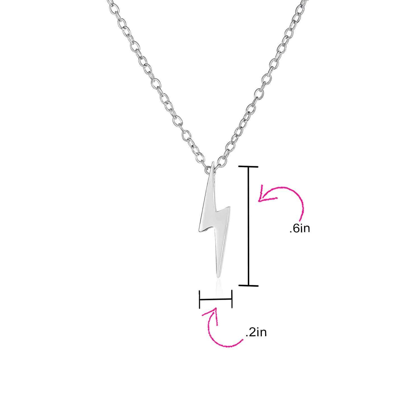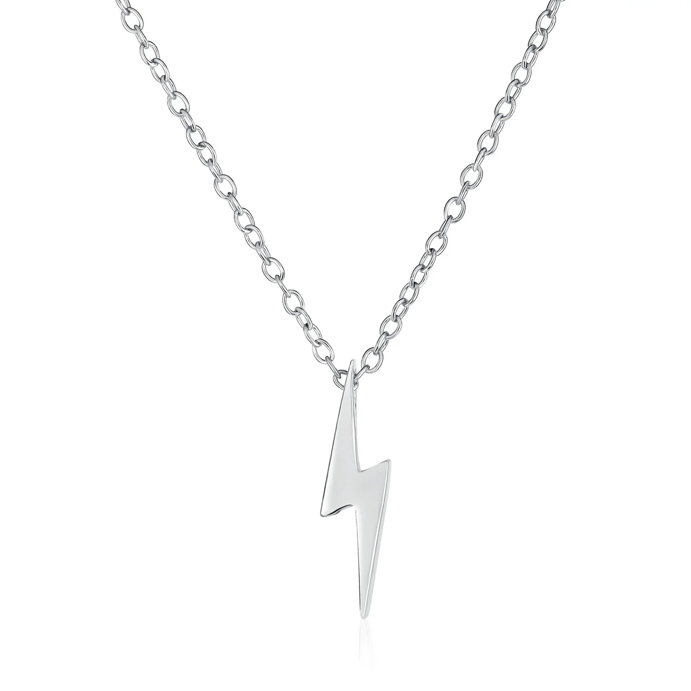 - Upgrade your fashion game with our stunning sterling silver lightning bolt necklace. This electrifying accessory is designed to add a touch of glam to any ensemble, instantly transforming your look. Crafted with electrocoated sterling silver, this necklace guarantees a lasting shine and durability. Whether you're dressing up or keeping it casual, this versatile piece will effortlessly elevate your style. For a trendy and chic vibe, layer this pendant necklace with other modern jewelry pieces and watch your outfit come to life. Available in gold plating as well, so you can choose the perfect finish to suit your personal style.