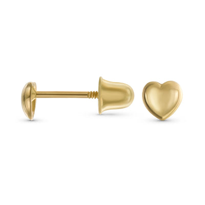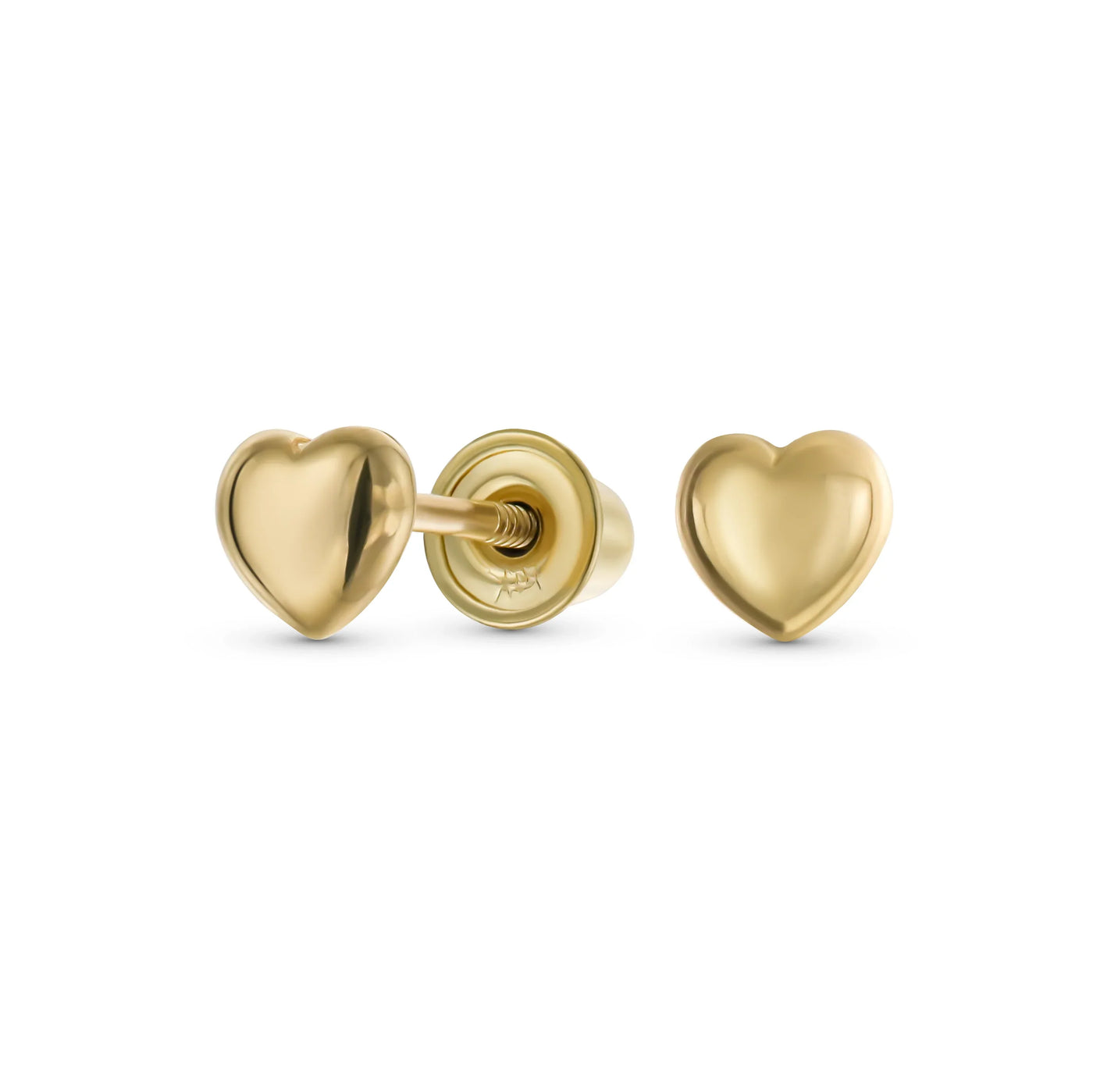 - Enhance your jewelry collection with these exquisite mirror-finish heart stud earrings. Made from solid 14K yellow gold, they are durable and hypoallergenic. The petite 5mm size, adding a subtle elegance. Perfect for any occasion, these timeless earrings complement any outfit. Treat yourself or a loved one to these classic heart studs, cherished for years.