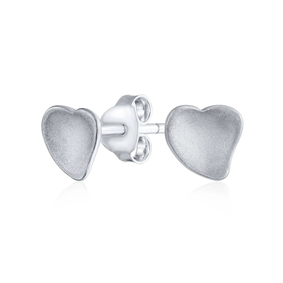 - These charming heart stud earrings are ideal for young fashionistas beginning their jewelry collections. Featuring a modern heart motif with a polished finish, these elegant earrings have a unique asymmetrical design. Perfect for adding a quirky, fun touch to any outfit, your little one will adore them.