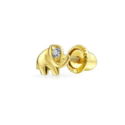 - Bring good luck to you and your little one with these adorable elephant single ear lobe stud earrings. Crafted from 14K yellow gold with delicate cz accents, these earrings feature a secure safety screwback for peace of mind.