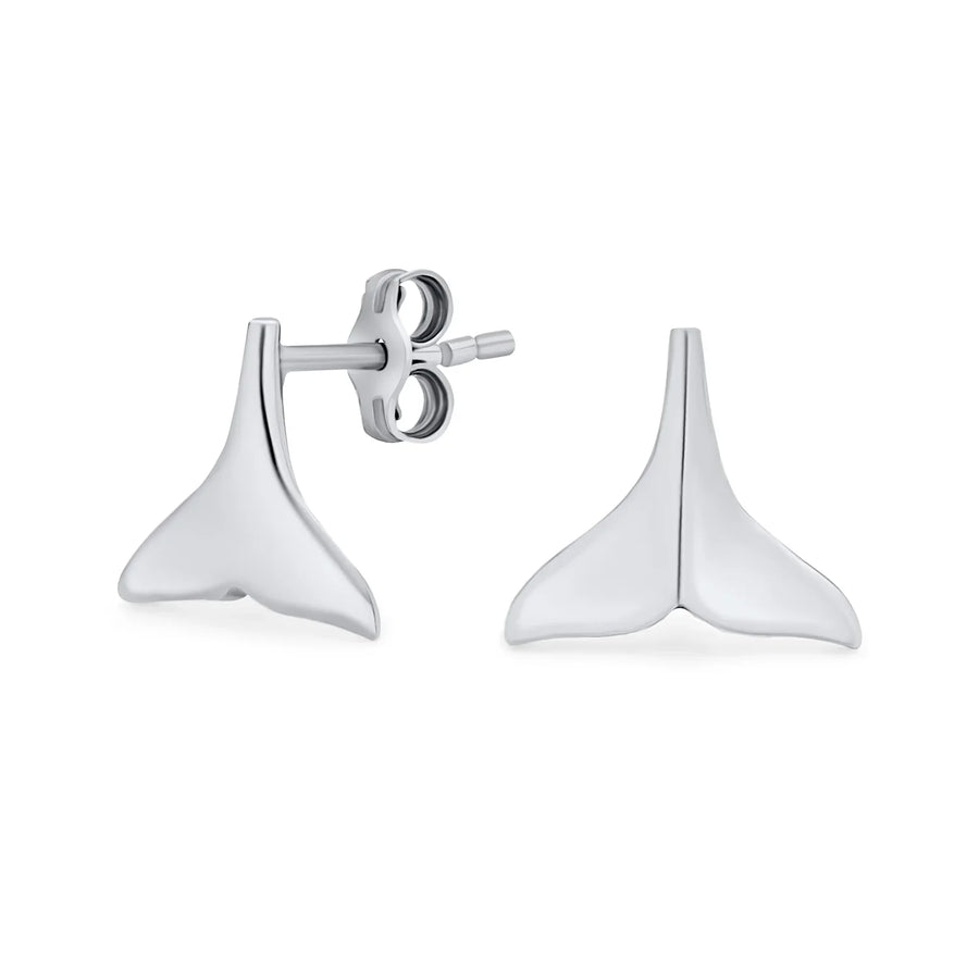 - We all know that there are plenty of fish in the sea, so why not add one to your jewelry box. Add a whimsical pair of sterling silver fun whale tail stud earrings to your collection of nautical jewelry. Enjoy a whale of a great time every time your wear these adorable silver stud earrings. Crafted entirely in 925 sterling silver and rhodium plated to resist tarnish and keep their highly polished look for many years to come, our nautical studs are a sensational way to spice up your summer wardrobe. Wear a new piece of beach jewelry when you walk along the shores of your favorite beach or wear your new whale tail studs when you go out on a whale watching expedition. Our silver studs fit securely with a post with friction back so that you can wear them with confidence. Fun and fashion come together perfectly in these rose gold plated sterling silver nautical stud earrings. Order yours today.
