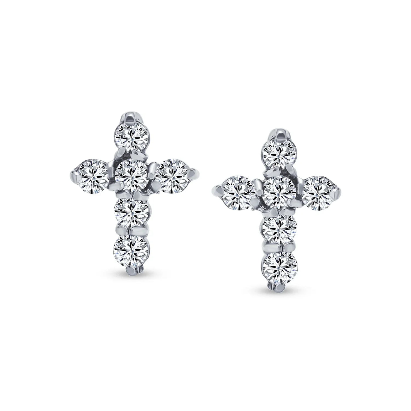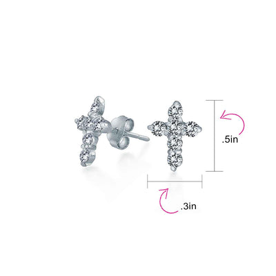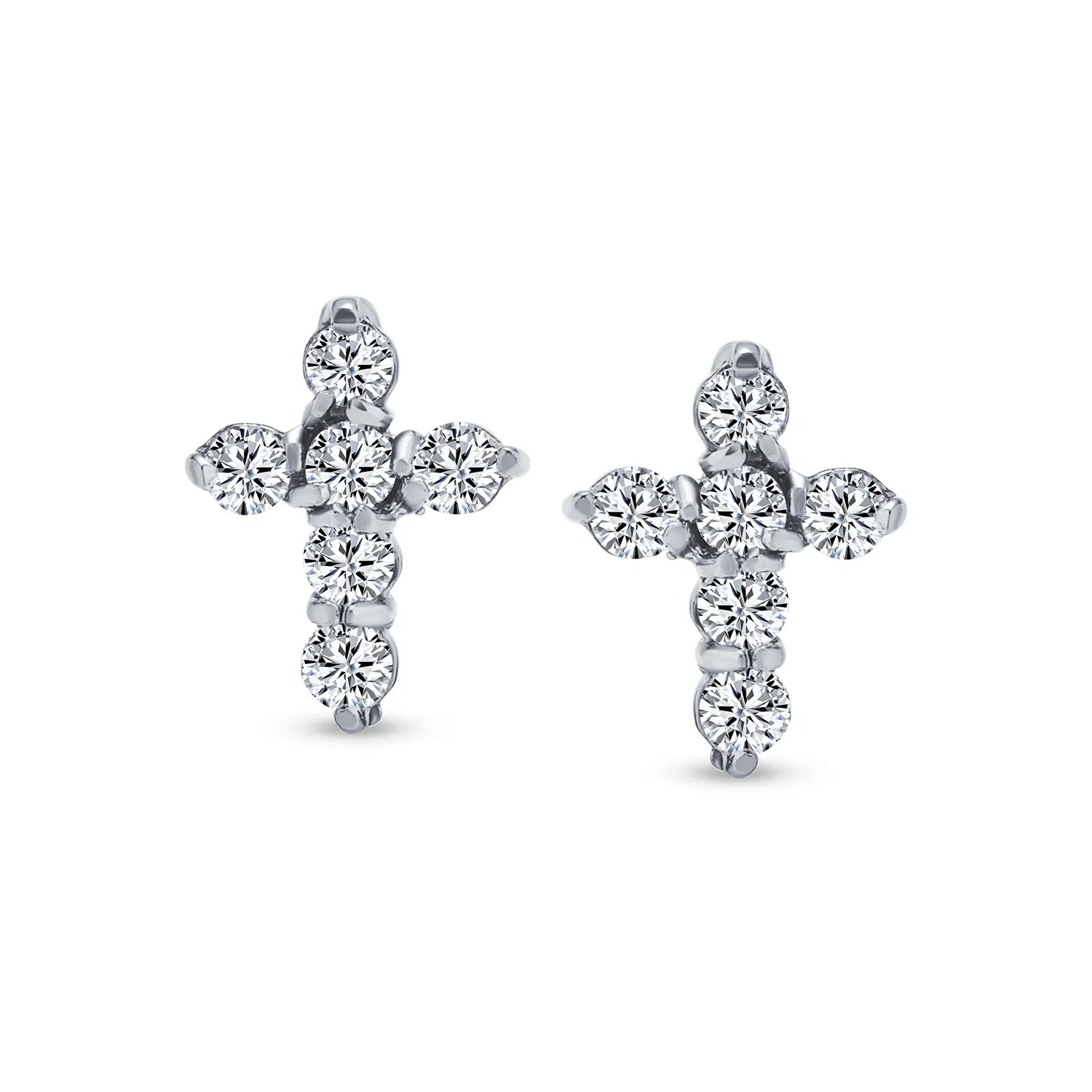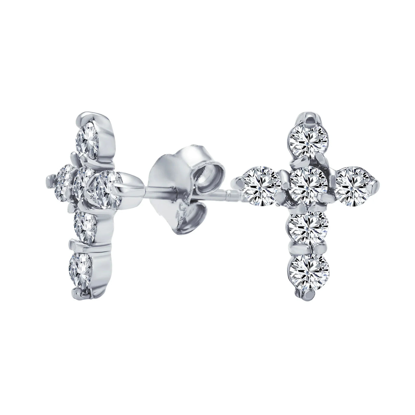 - Your devotion is Gold Tone in our sterling silver cross stud earrings. Featuring delicate cubic zirconia stones, these 14K yellow gold plated silver cross earrings are perfect for your religious gathering. Wear your religious jewelry everywhere you go. They also make great religious gifts for women.