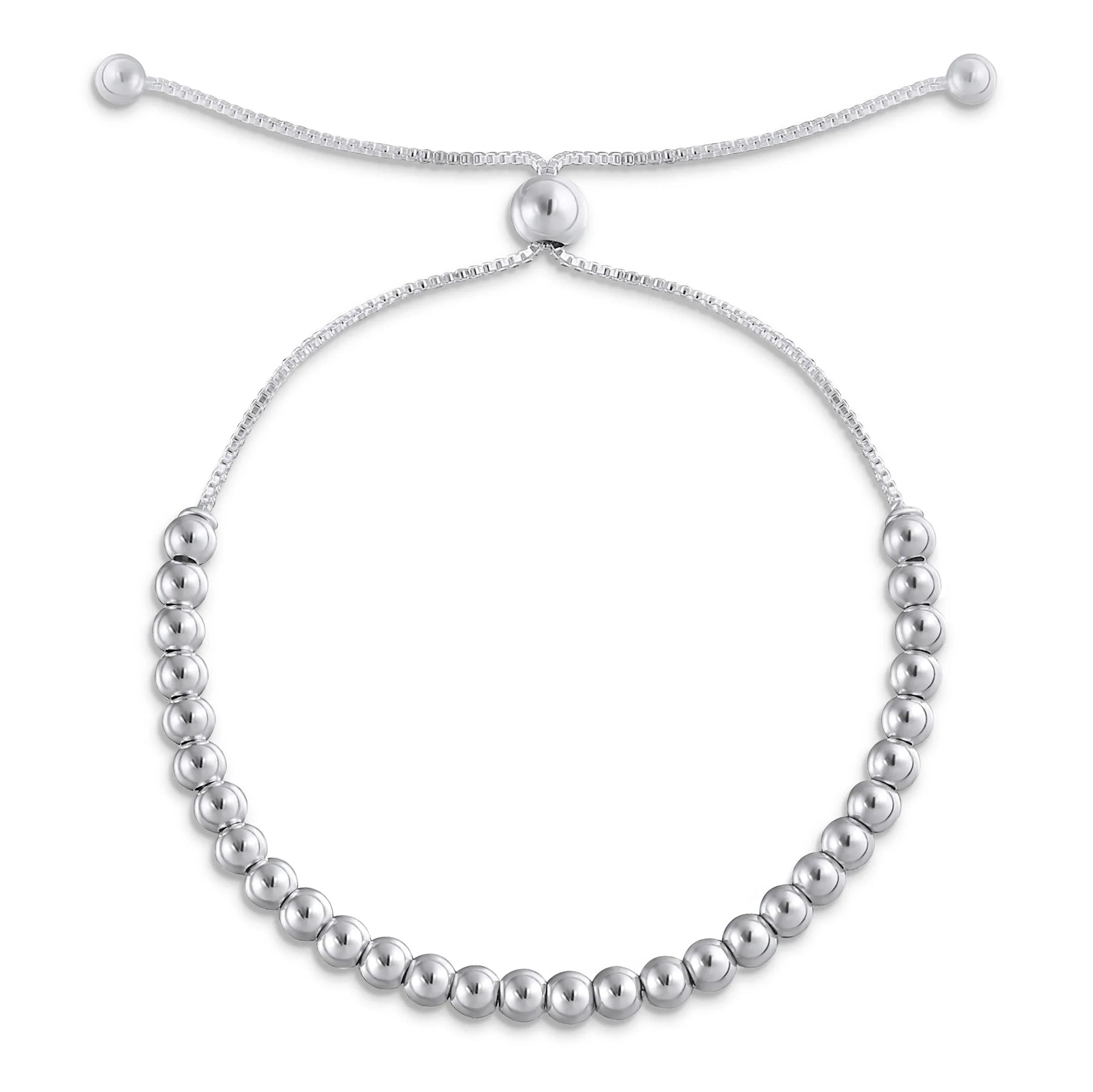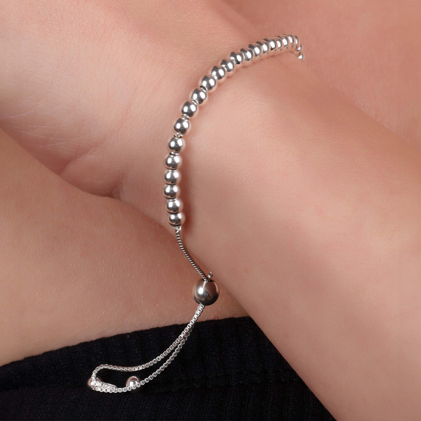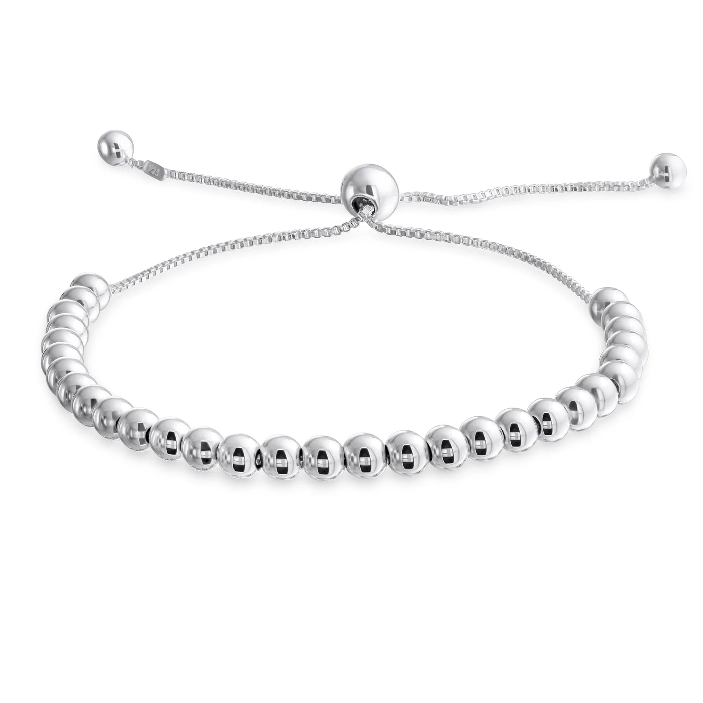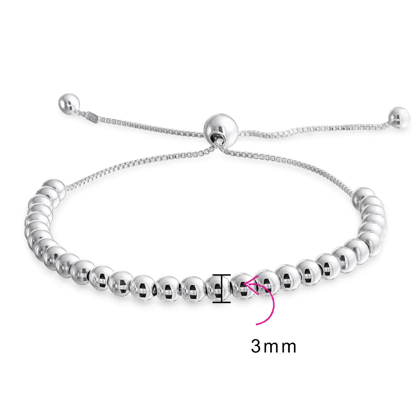 - Sophistication meets simplicity in our sterling silver bead bracelet. Crafted with precision, this bolo-style bracelet features 3mm .925 sterling silver beads. The beads are seamlessly intertwined with a box link chain, radiating elegance and charm.