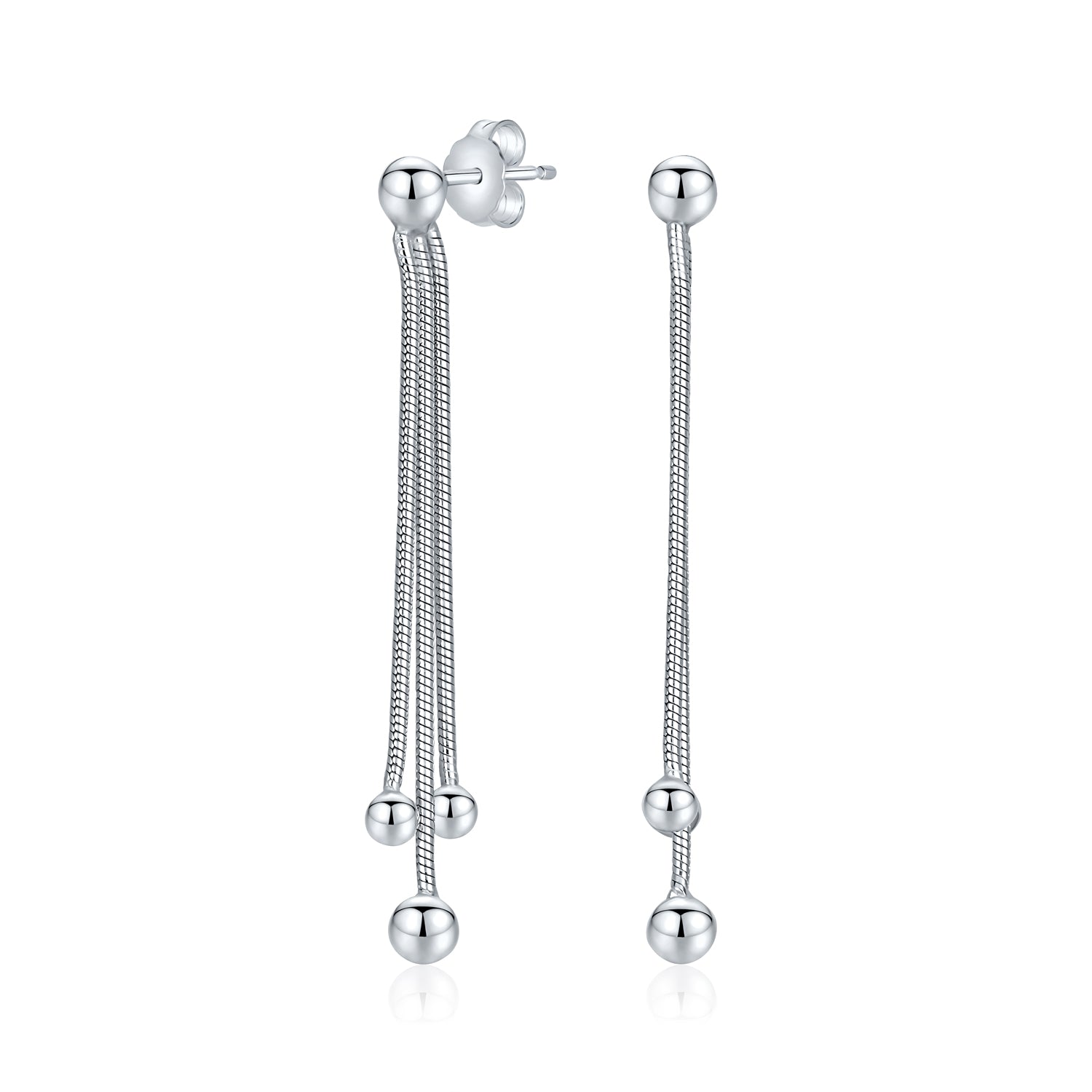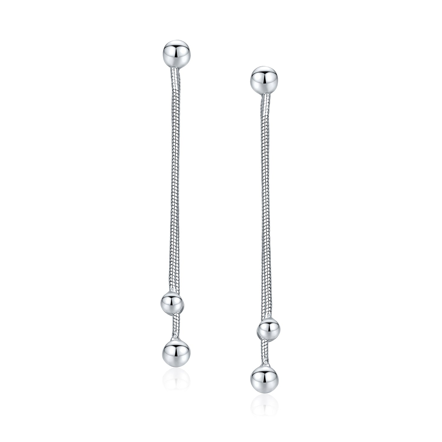 • These silver post earrings are the hottest new accessory. Celebrities in Hollywood love these dangling ball earrings. Lightweight and made with .925 sterling silver, they won't chip. Our stylish and funky silver drop earrings feature three dangle beads. Perfect for accessorizing your awesome outfits with box chain earrings. These ball dangle earrings are meant for you.