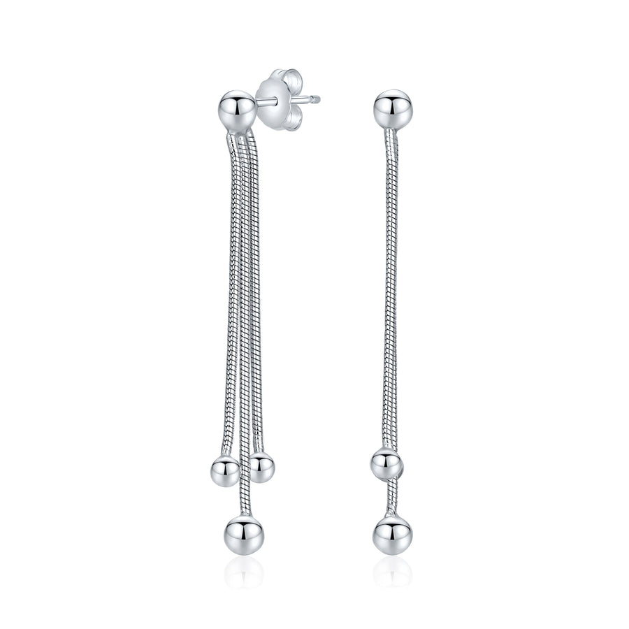 • Long Chains Bead Ball Drop Earrings - Crafted with durable .925 sterling silver, these lightweight ball dangle earrings are designed to last without chipping. Stay stylish and funky with our unique silver drop earrings.