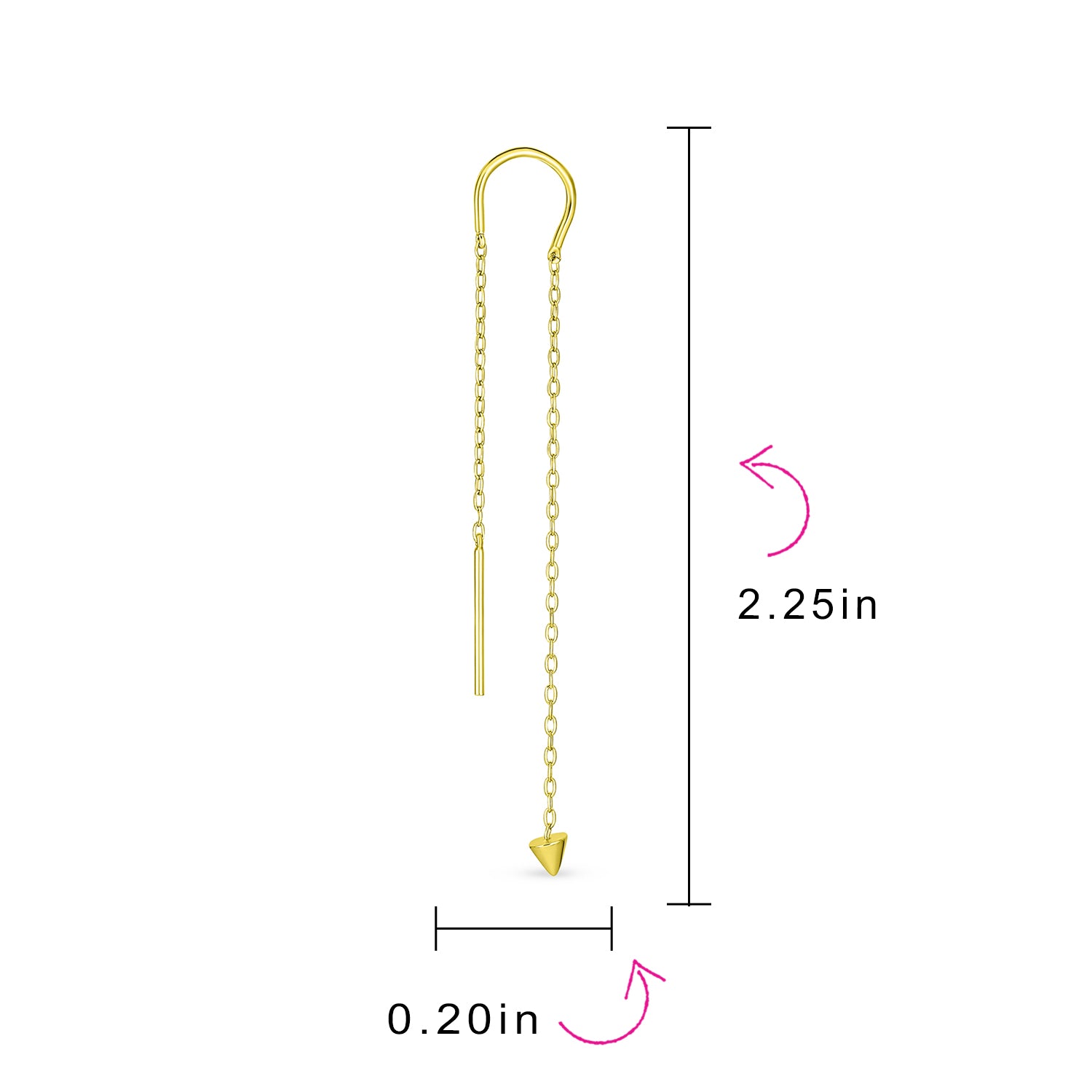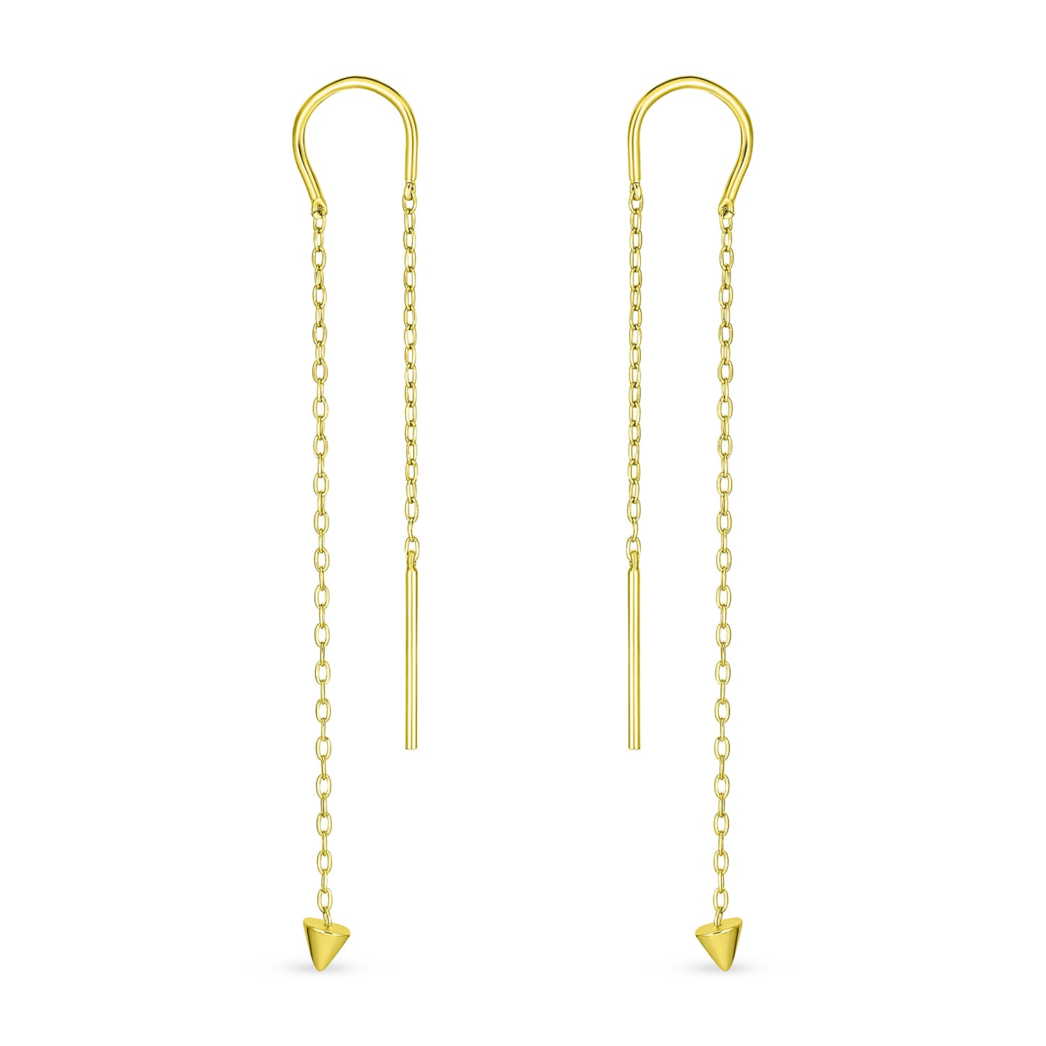 • For an airy, delicate style that makes an irresistible yet, subtle style statement, pick up these alluring, 2.25 in gold plated sterling silver ear Threader earrings. Featuring a modern, pointed spike motif dangling from a dainty, rolo chain.