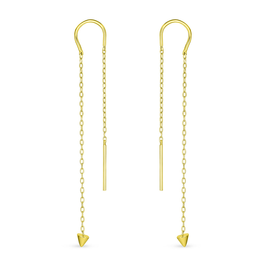 • Make a bold fashion statement with gold plated sterling silver Threader earrings. A tiny spike dangles from a two-inch rolo chain. These modern earrings let you channel your inner diva. Electro coated gold plated sterling silver spike earrings make a great gift for yourself or fashion-forward friends.