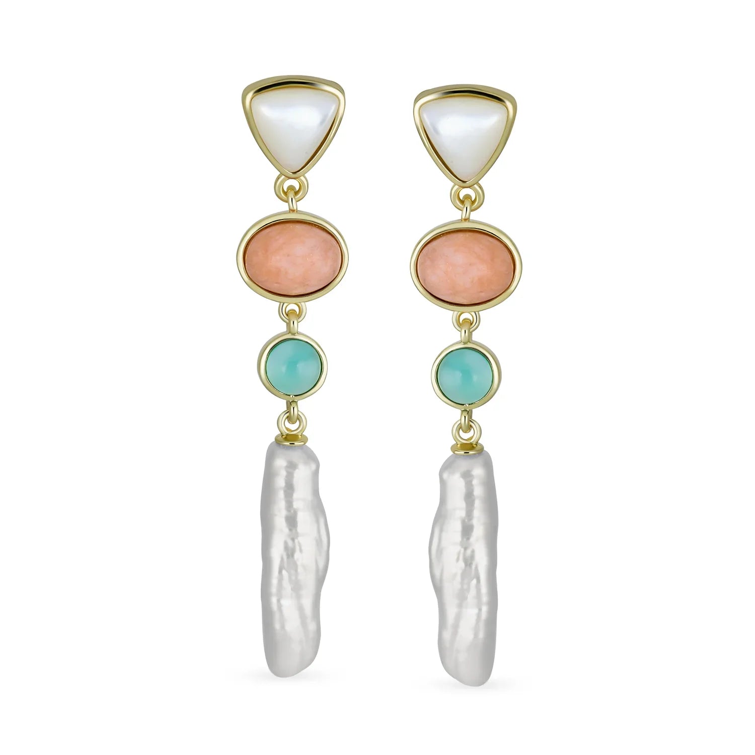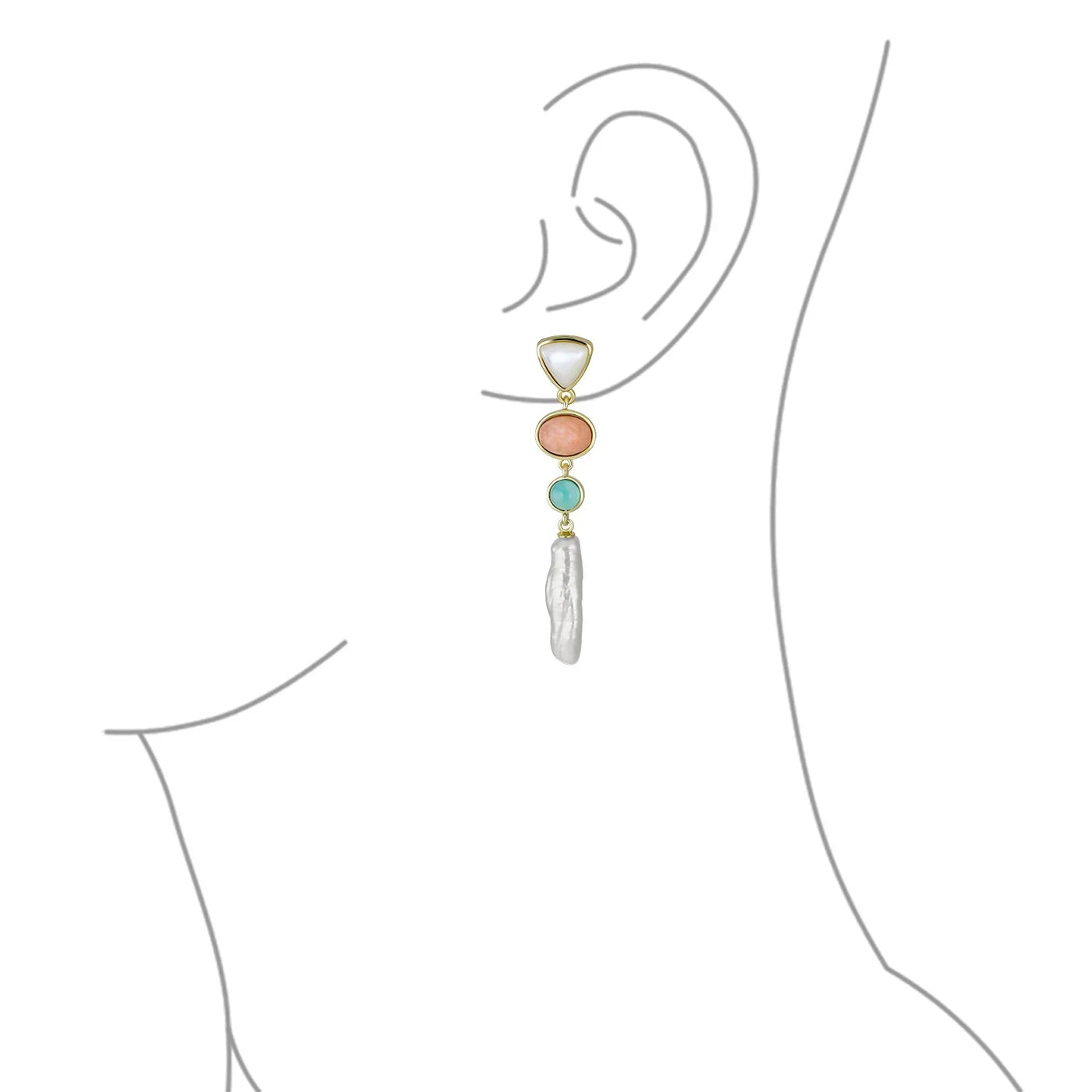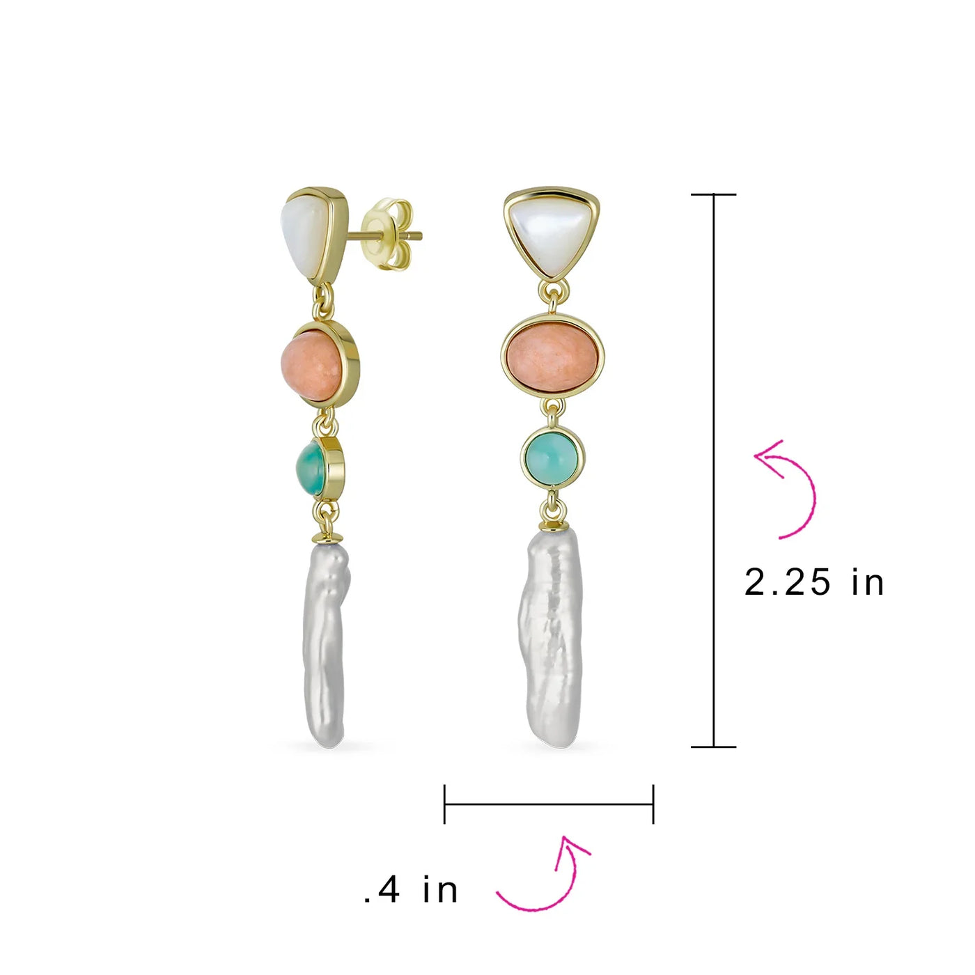 Modern Bridal Dangle Gemstone Earrings with Tri Tone Pastel Gemstones & Pearls