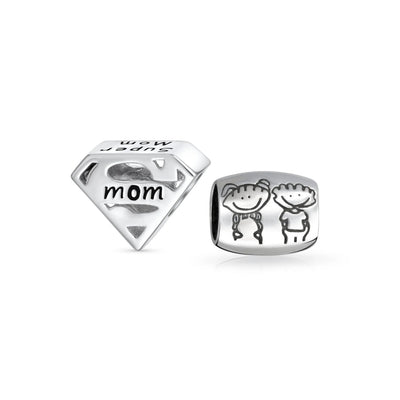 - For a loving mom or anyone who cherishes their mother, these Super Women super mom diamond-shaped sterling silver beads, featuring "mom" carved in a bead and a smiling brother and sister duo bead, are the perfect addition to any mom's bead collection.