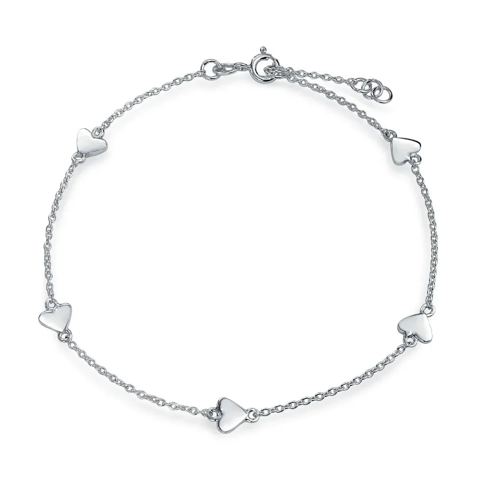 Multi Love Heart Anklet Ankle Bracelet Sterling Silver 9-10 Inch - Bling Jewelry