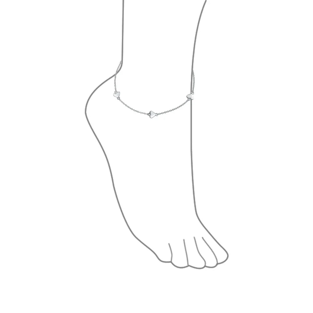• This elegant Ankle Bracelet adds charm to any ankle. Crafted from polished 925 sterling silver, it features five heart links. The anklet is 9 inches long, extendable to 10 inches. Perfect for Valentine's Day, Mother's Day, or any special occasion. Show your love with this stylish heart anklet. Add it to your jewelry collection or gift it today.