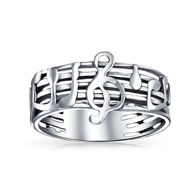 - Ideal for music lovers, this sterling silver music notes ring will have you singing. Inspired by music notes, this modern jewelry piece showcases your love of song. Add a signature touch to any outfit with this sterling silver ring.