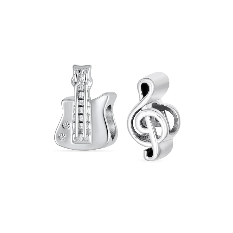 - Rock n roll is here to stay. Our sterling silver guitar charm and music note is perfect for electric guitar music lovers. Perfect gift for any music lover. Commemorate concerts with this chic music-themed jewelry. Add a playful touch to your unique beads bracelet.