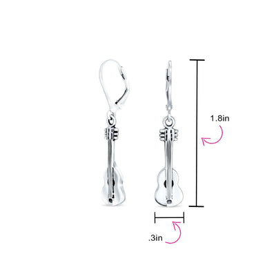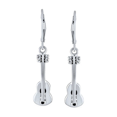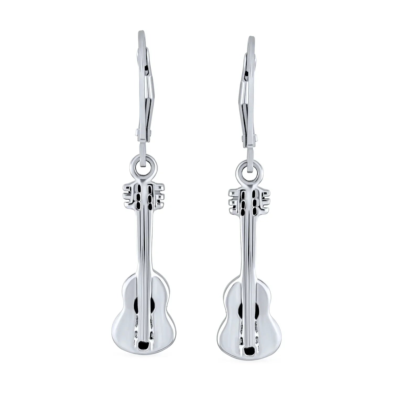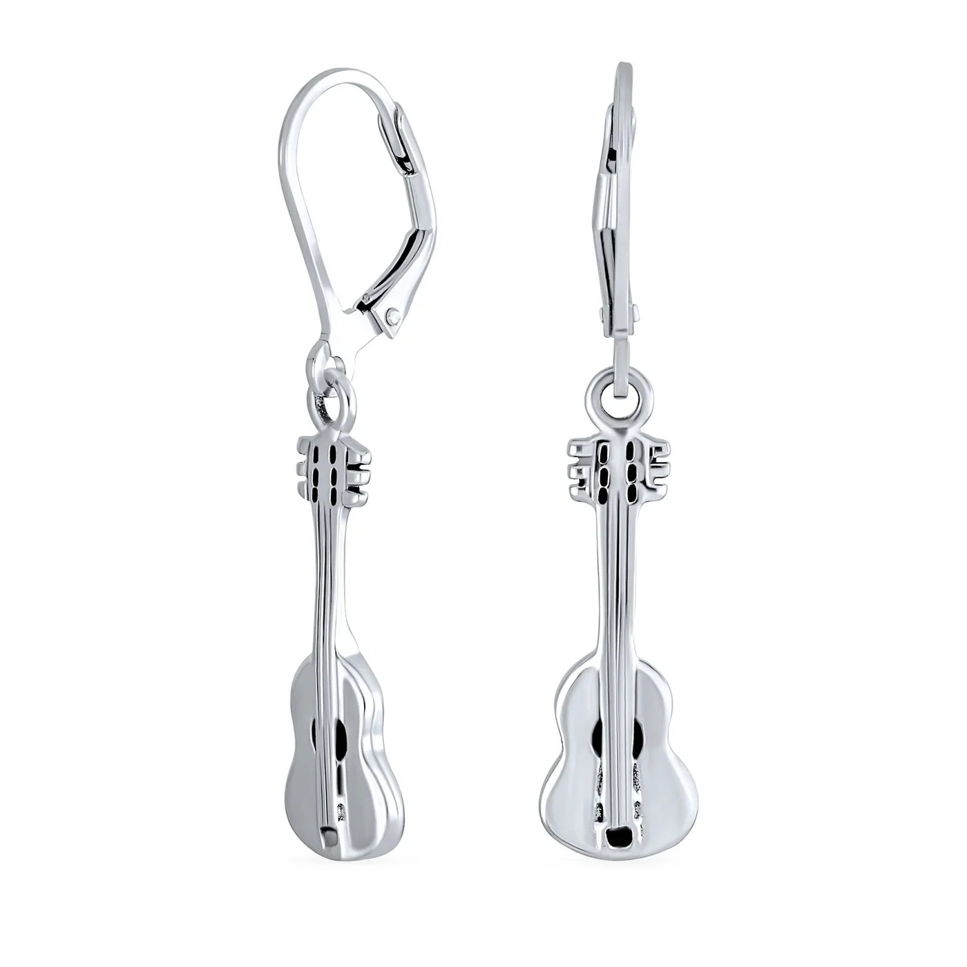 - Rock n roll enthusiasts, rejoice! Our sterling silver musician earrings are perfect for aspiring musicians and music lovers. These adorable dangling guitar earrings are a must-have accessory. Strum a guitar or belt out tunes in style. lever back earrings add a touch of flair. Embrace your love for music with these trendy, fashionable earrings.