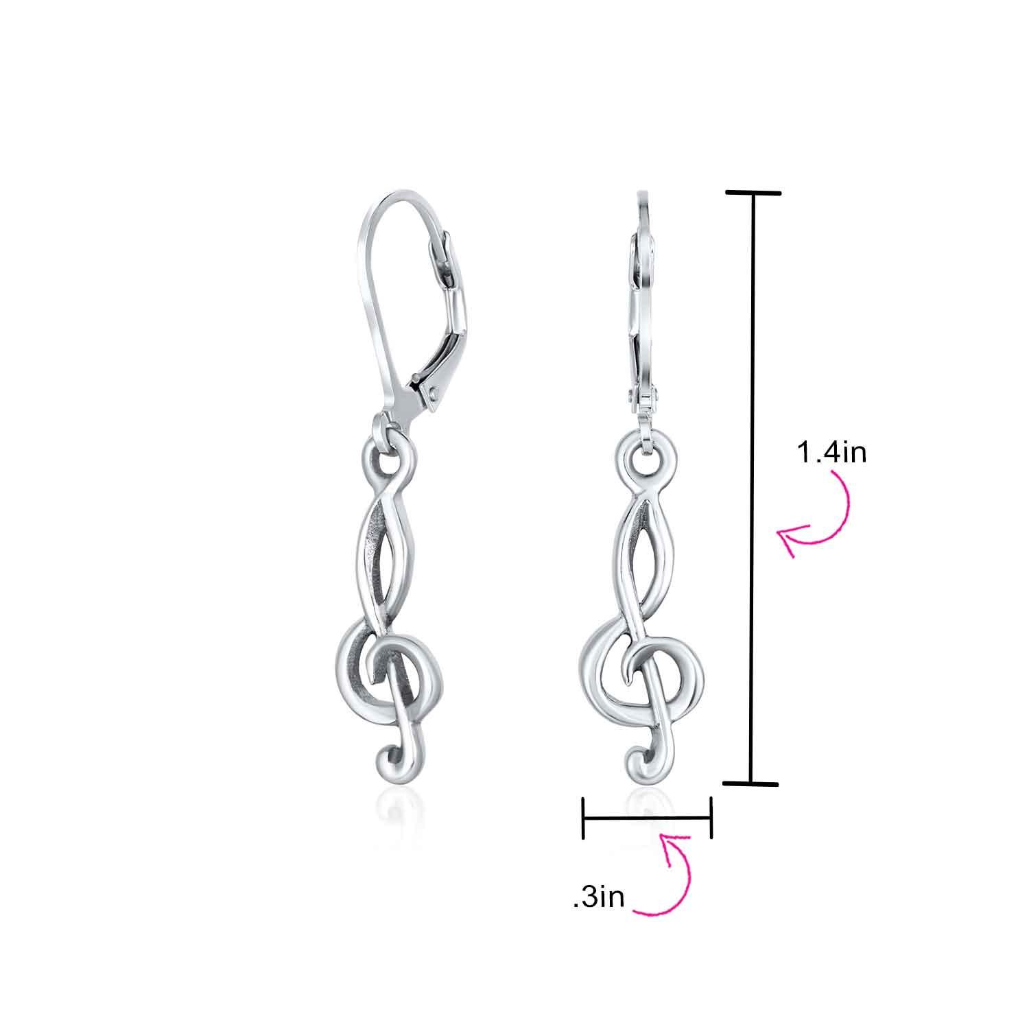 • Searching for the perfect gift for a music lover? Our silver musical note earrings are ideal. These sterling silver stud earrings are a memorable gift, especially when paired with her favorite song. Petite and adorable, they complement multiple ear piercings beautifully. Crafted from 925 sterling silver, these dainty g clef earrings secure with a post backing. Add a cute touch to any outfit with our silver musical note jewelry.