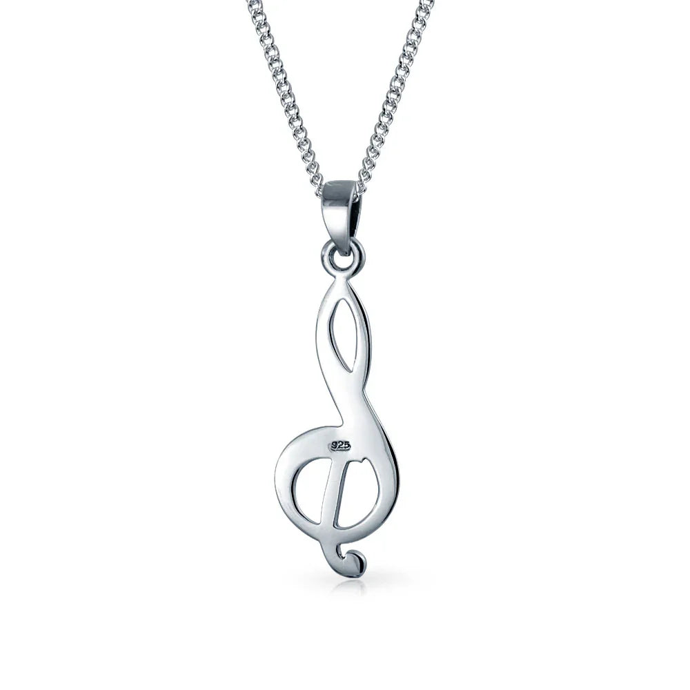 Musician Teacher Student Treble Clef Music Note Pendant Necklace Sterling Silver - Bling Jewelry