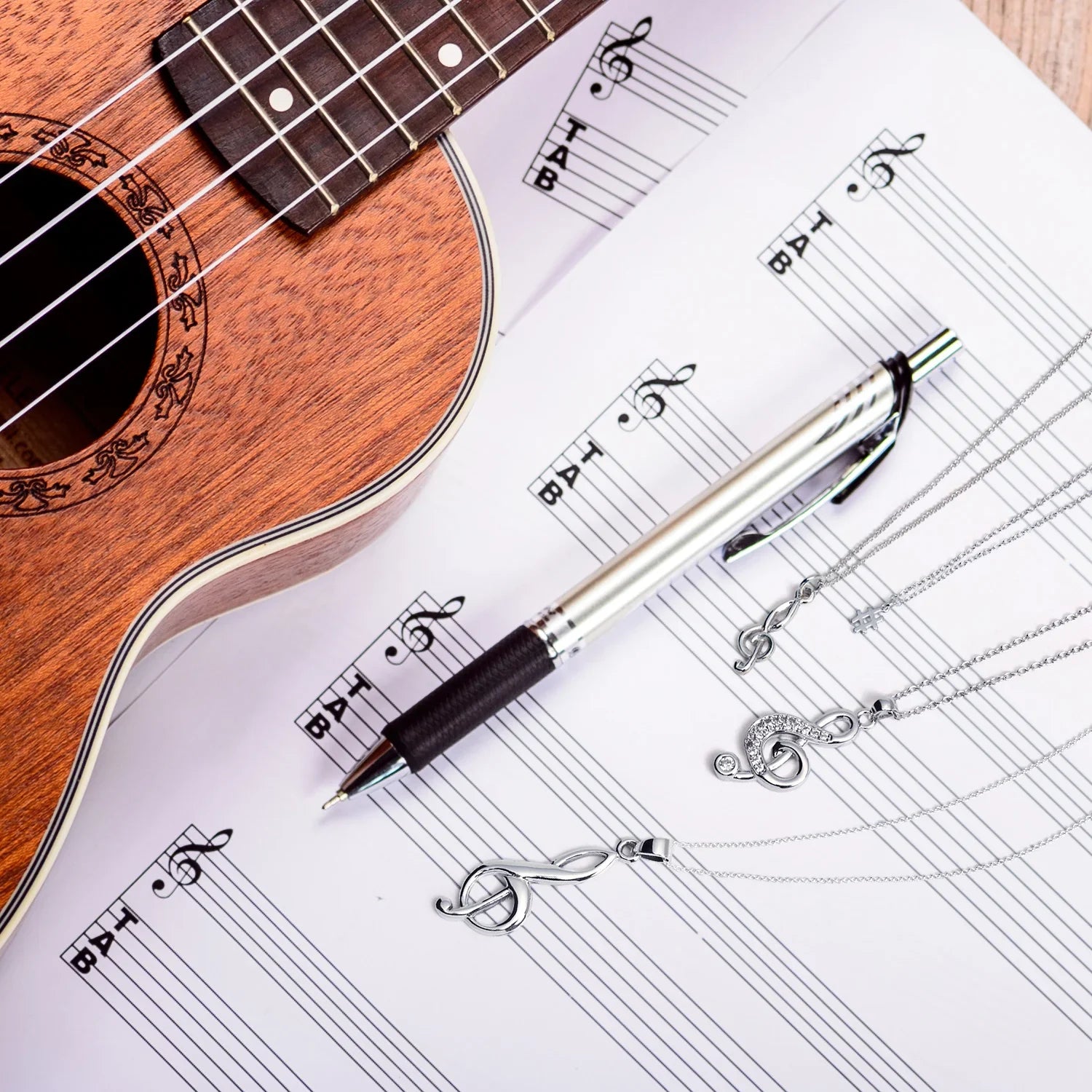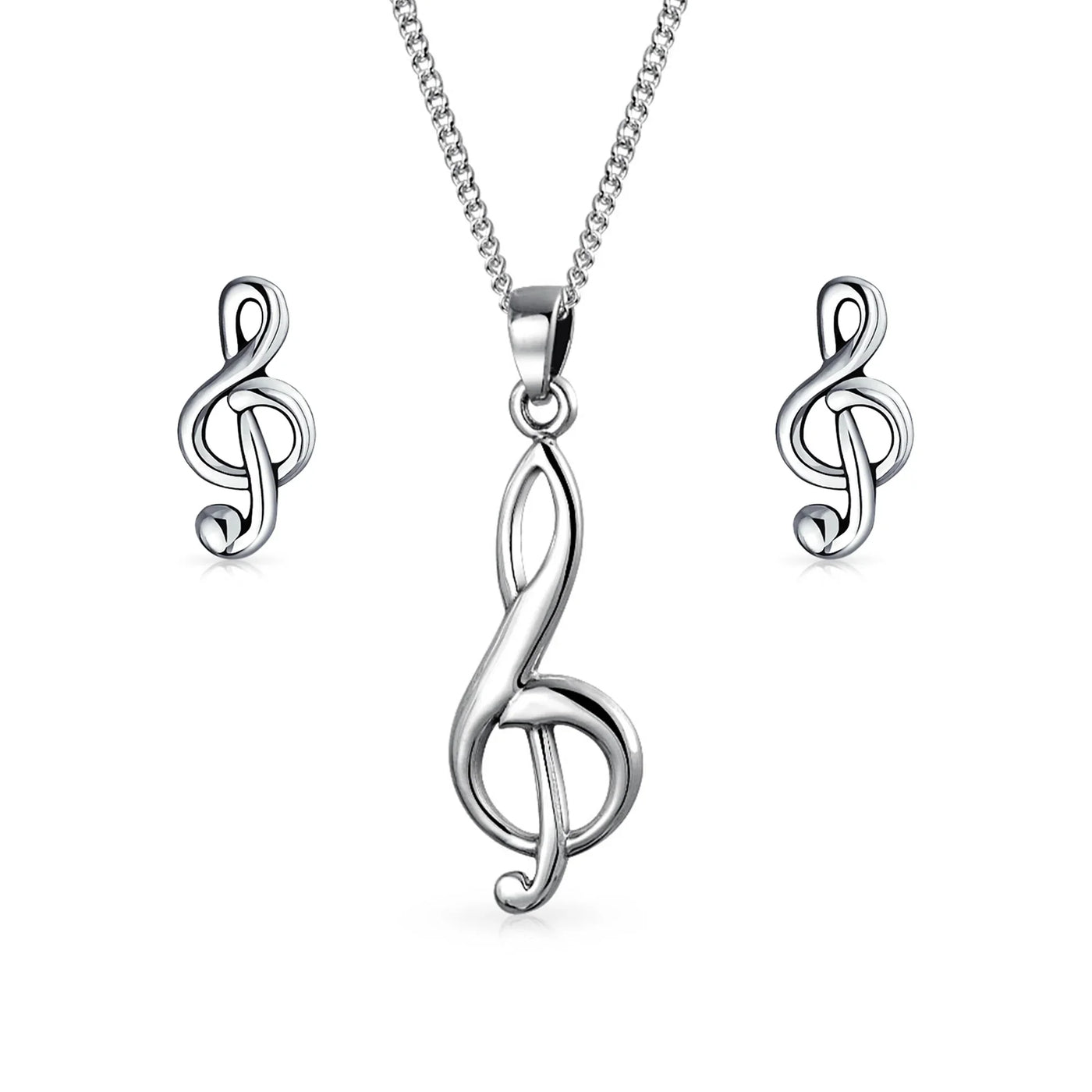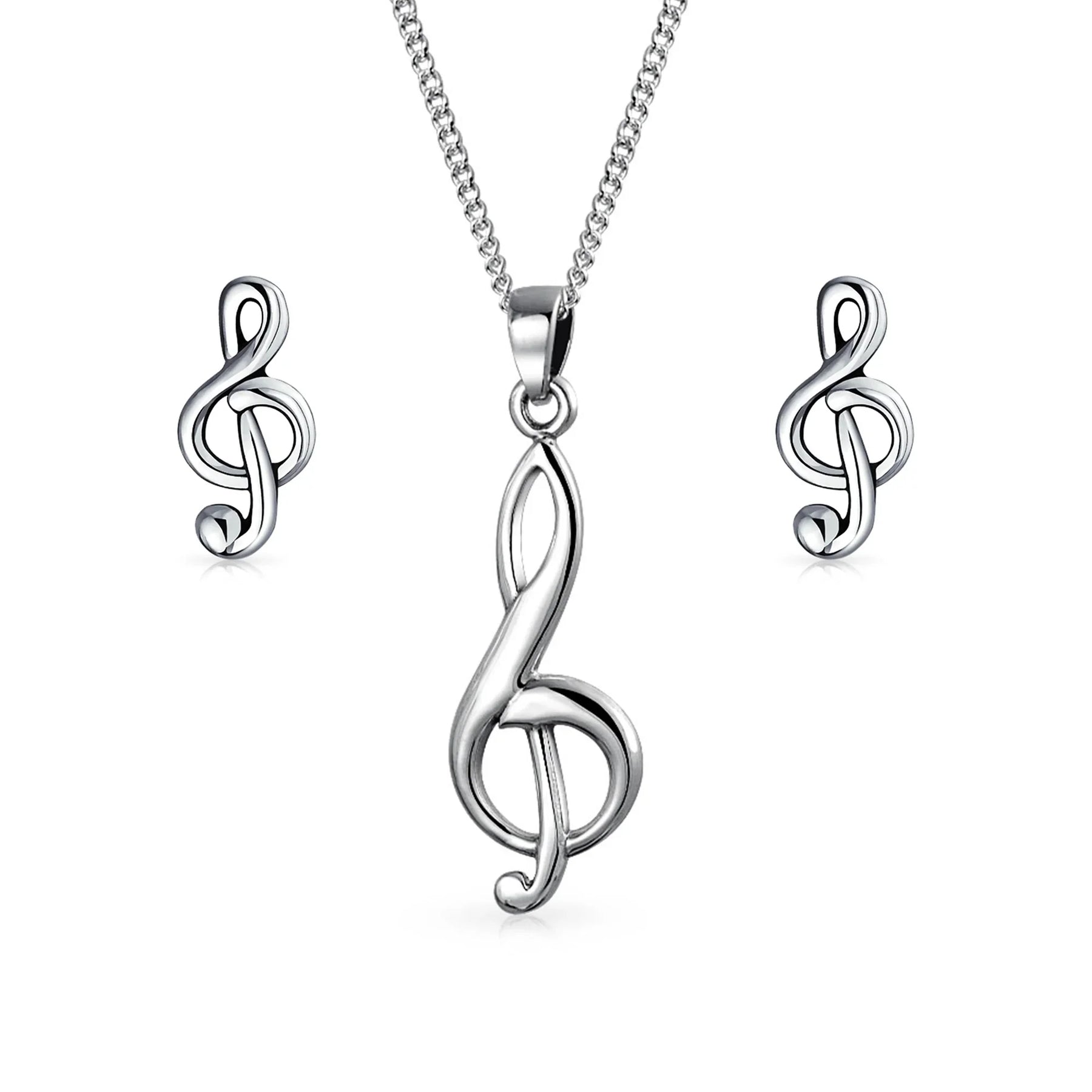 - Show off your passion for music with this stunning music note necklace and earring set. Crafted from high-quality .925 Sterling Silver, this necklace is not only durable but also timeless in style. Whether you're an aspiring singer or just love to belt out tunes in the shower, this necklace is the perfect accessory for any music enthusiast. Give the gift of music and style to yourself or a loved one with this beautiful silver jewelry piece.