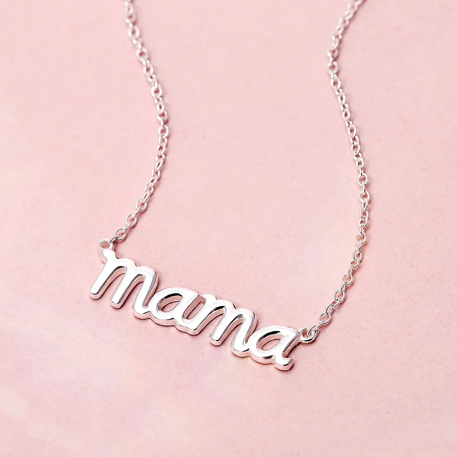 - Show your love for mom with this stunning rose gold plated 925 Sterling Silver necklace . Features "Mama" in elegant cursive.