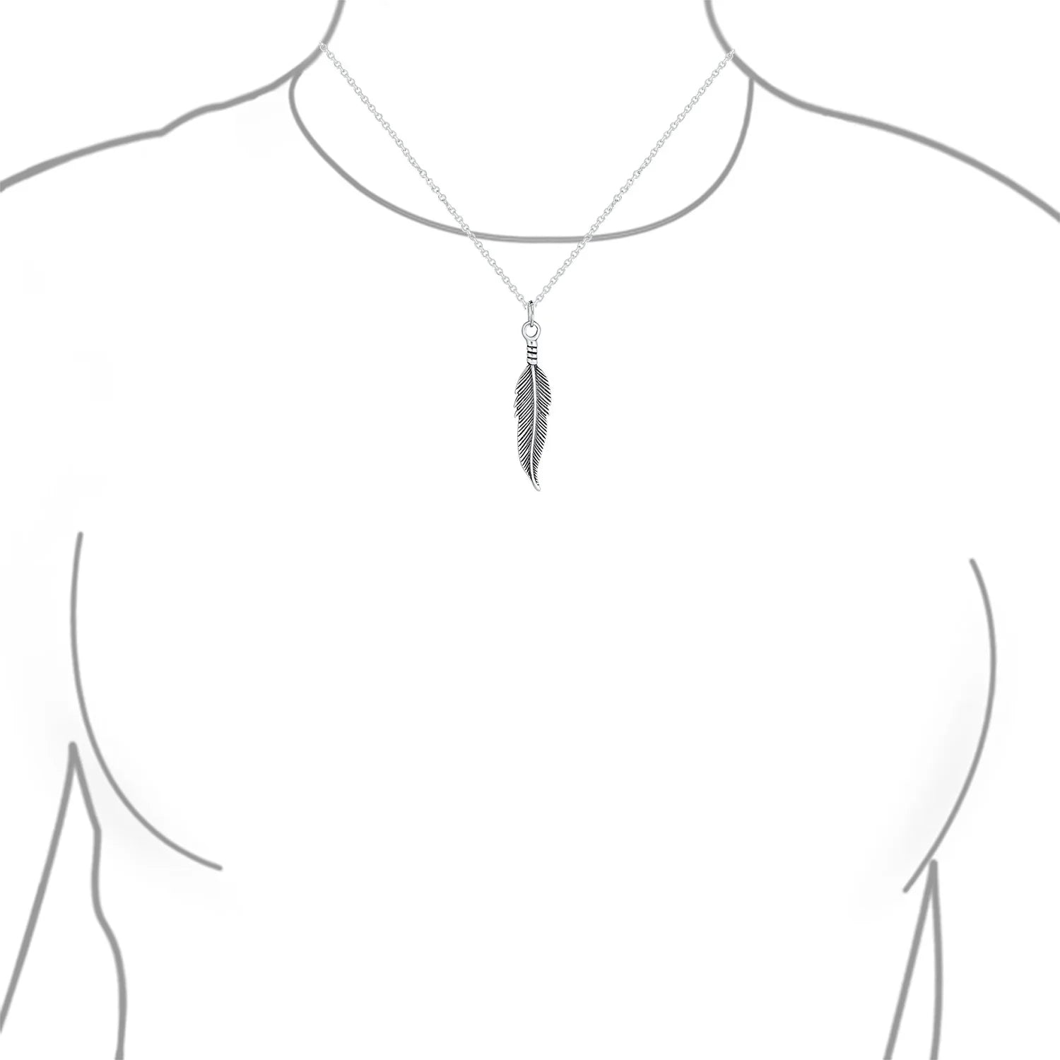 - This bohemian .925 Sterling Silver necklace is ideal for nature-inspired jewelry lovers. It features a feather pendant on an 18-inch silver Cuban curb chain. The oxidized .925 Sterling Silver adds an antiqued look. Perfect for those who love Southwestern and Native American style. Layer with real feather pieces for a bohemian princess vibe. This trendy Southwestern jewelry is a must-have. Get this quality .925 Sterling Silver piece today!