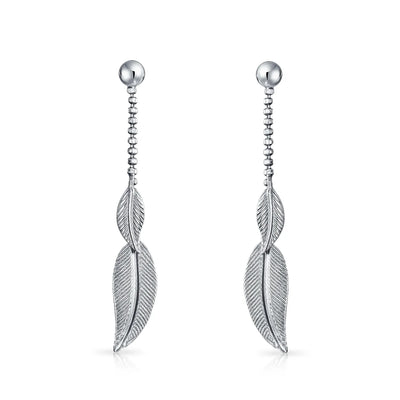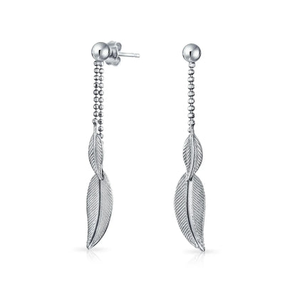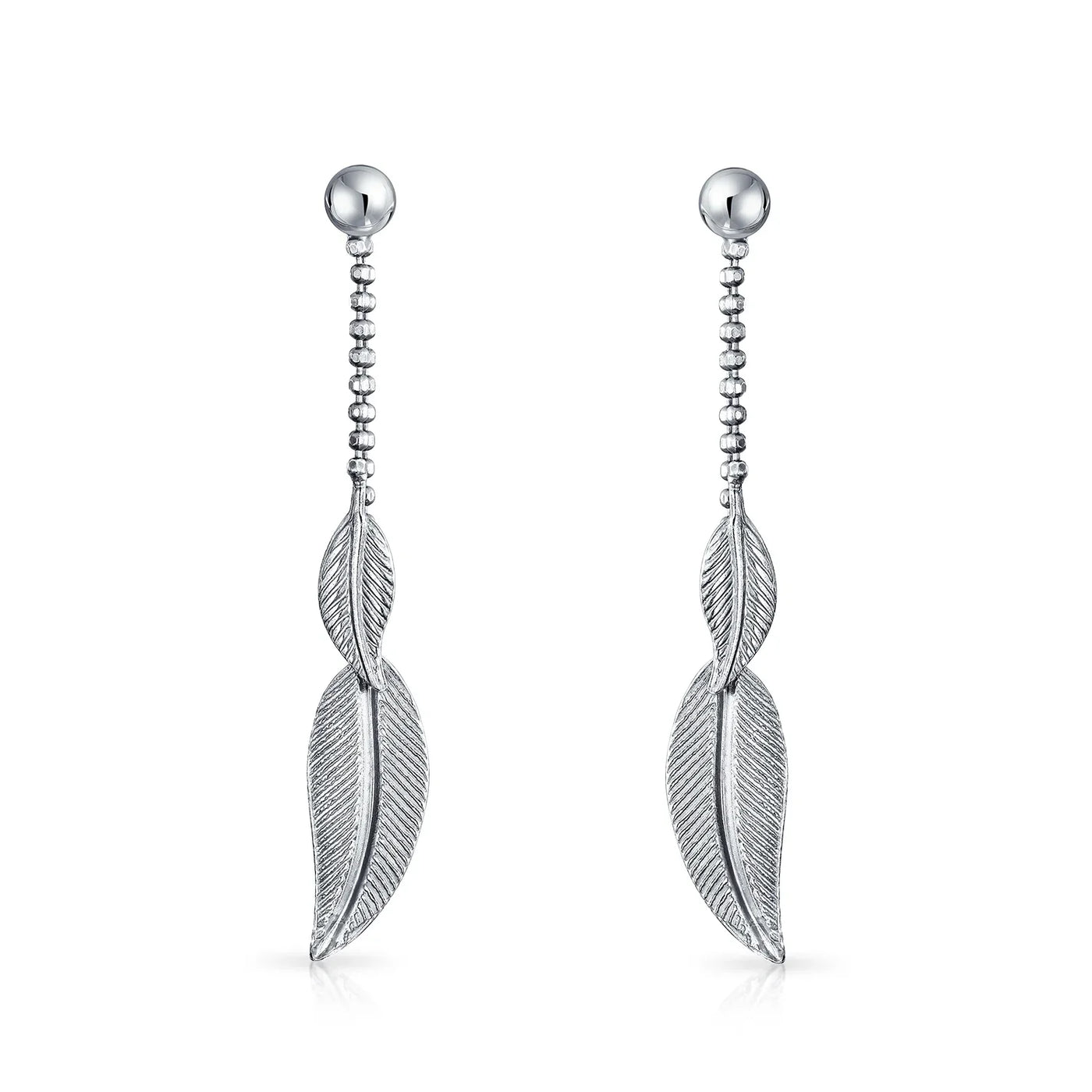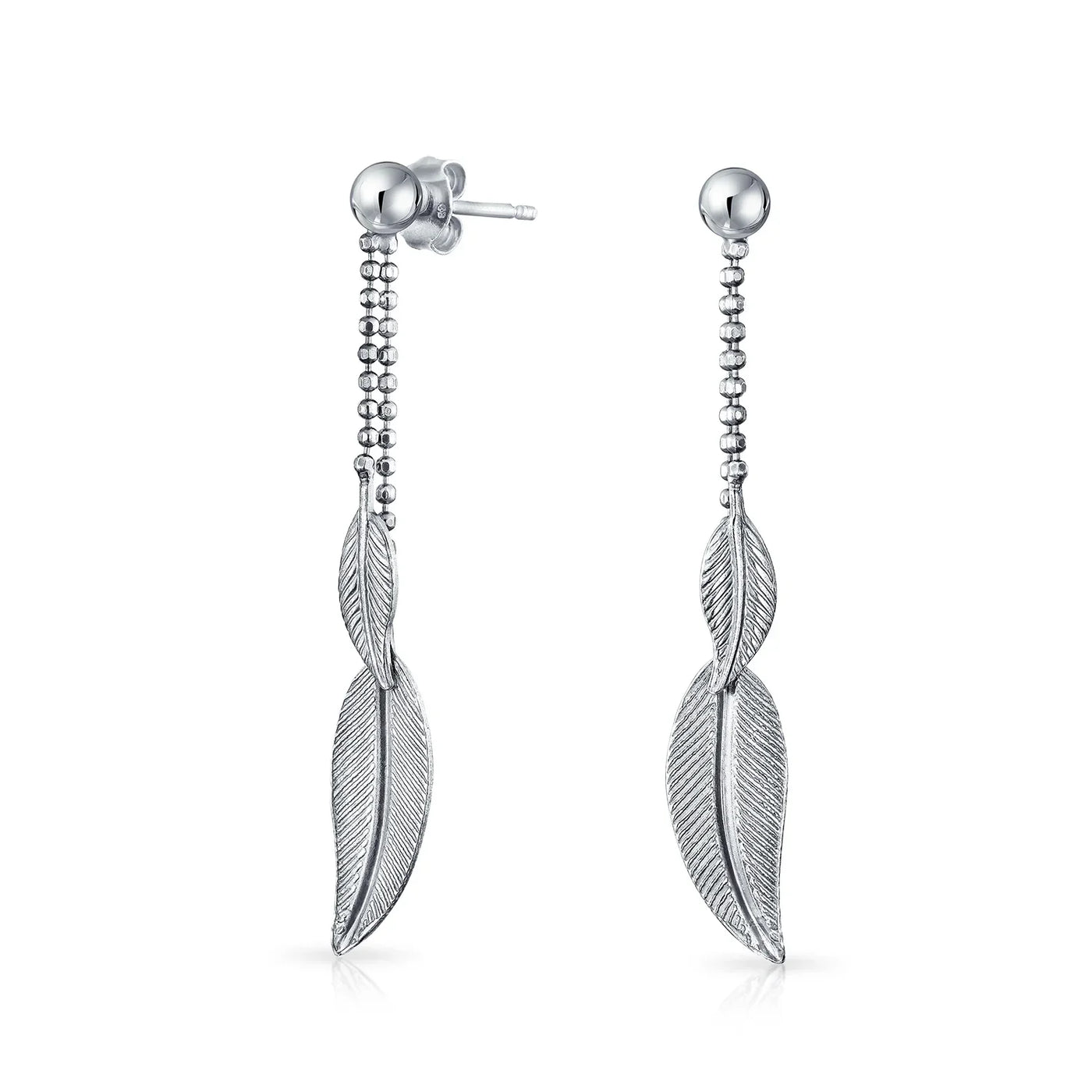- Embrace nature with Bohemian Feather Leaf Earrings. Sterling silver with antique finish, wear as feathers or leaf motif. Dangling bead chain from 4mm ball, butterfly clasp. Perfect for boho style, spring look, or summer dresses. Stylish, fun, and playful, these nature earrings shine. Get your silver dangle earrings today!