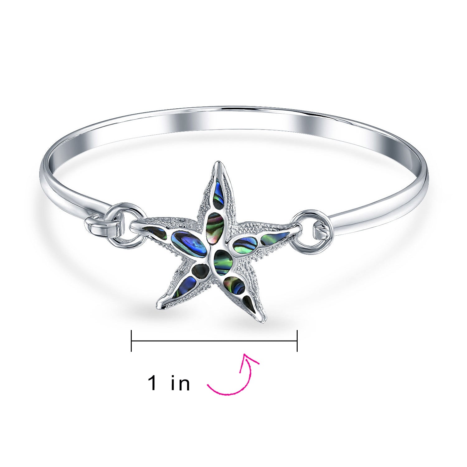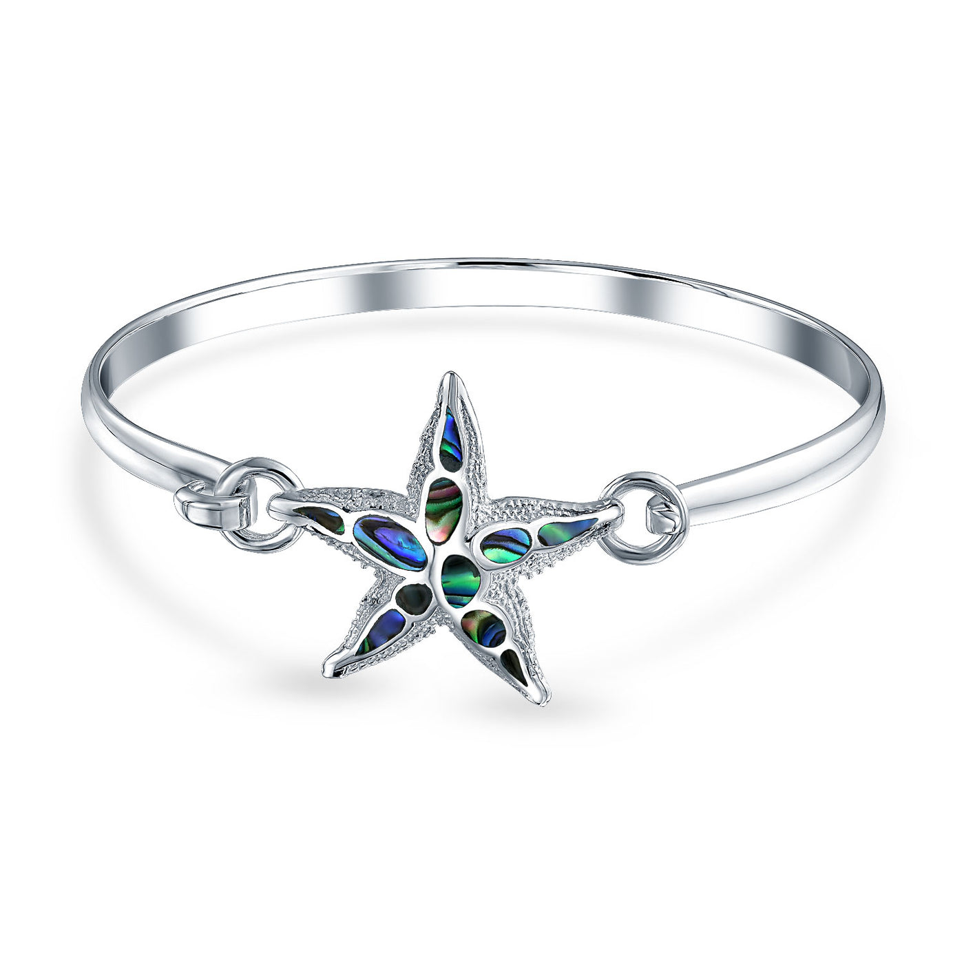 - Enhance your summer style with this stunning .925 sterling silver starfish bracelet. Features abalone shell inlay and milgrain detailing.