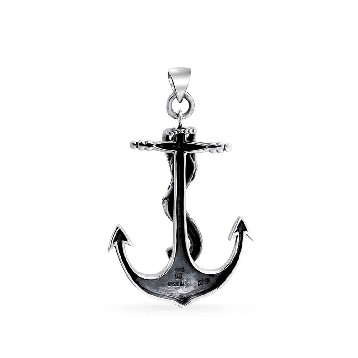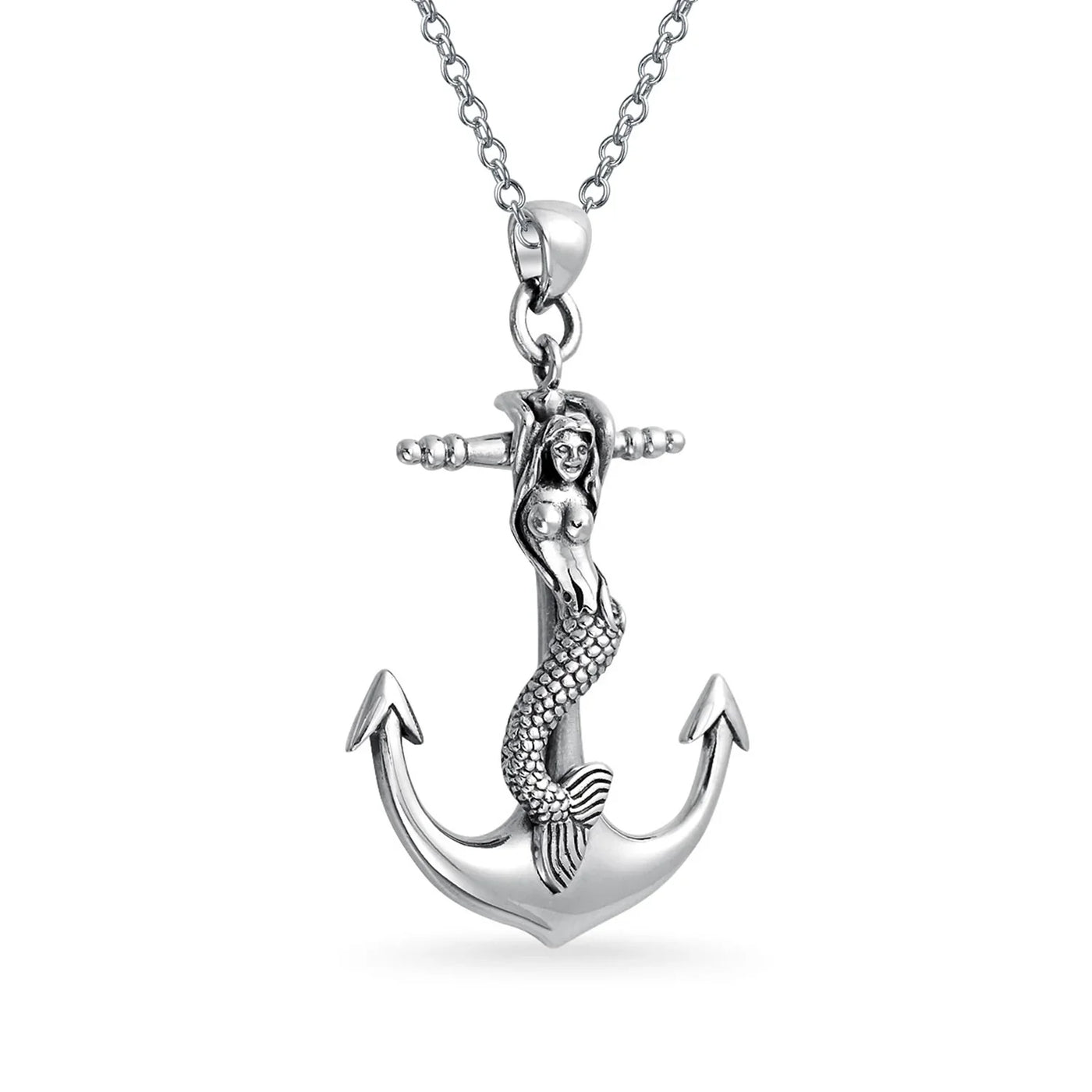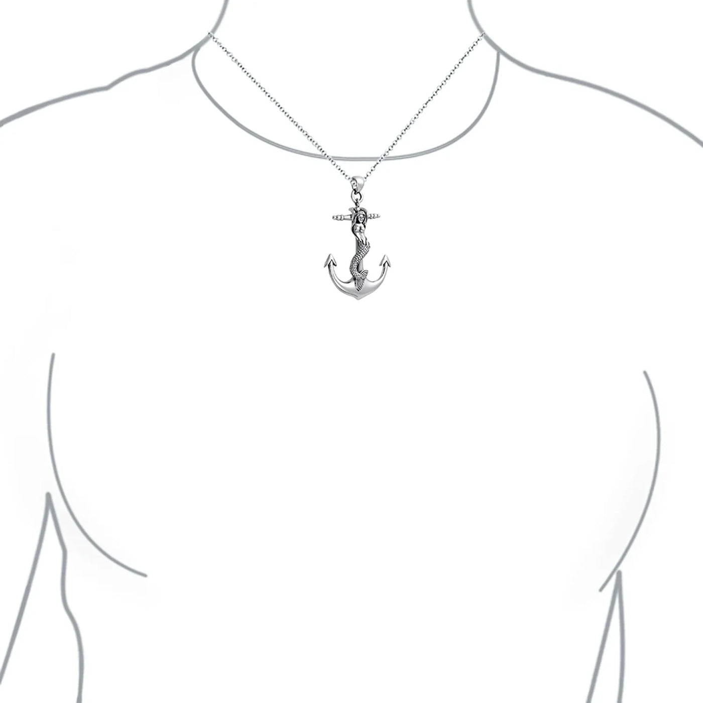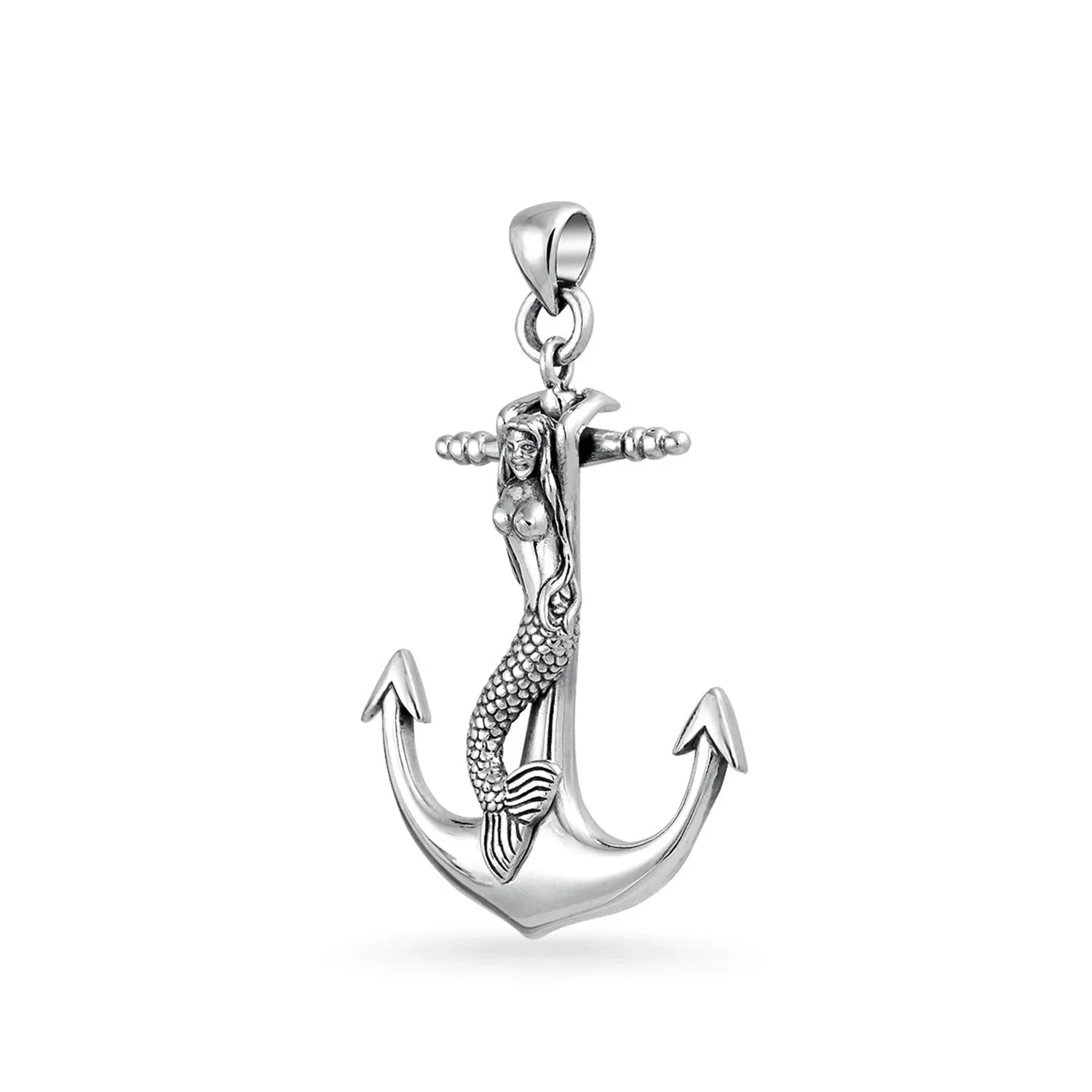 - Make a splash with our .925 Sterling Silver mermaid anchor pendant. At 2 inches long and 1.25 inches wide, it stands out. Crafted from fine .925 Sterling Silver, it captures the mythical mermaid's spirit. The polished anchor adds nautical charm to any outfit. The oxidized scales give a textured, classy look. Perfect for your next nautical adventure. Shine now with this unique men's pendant.