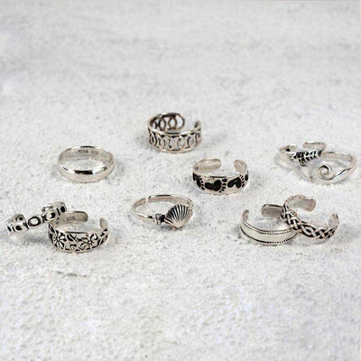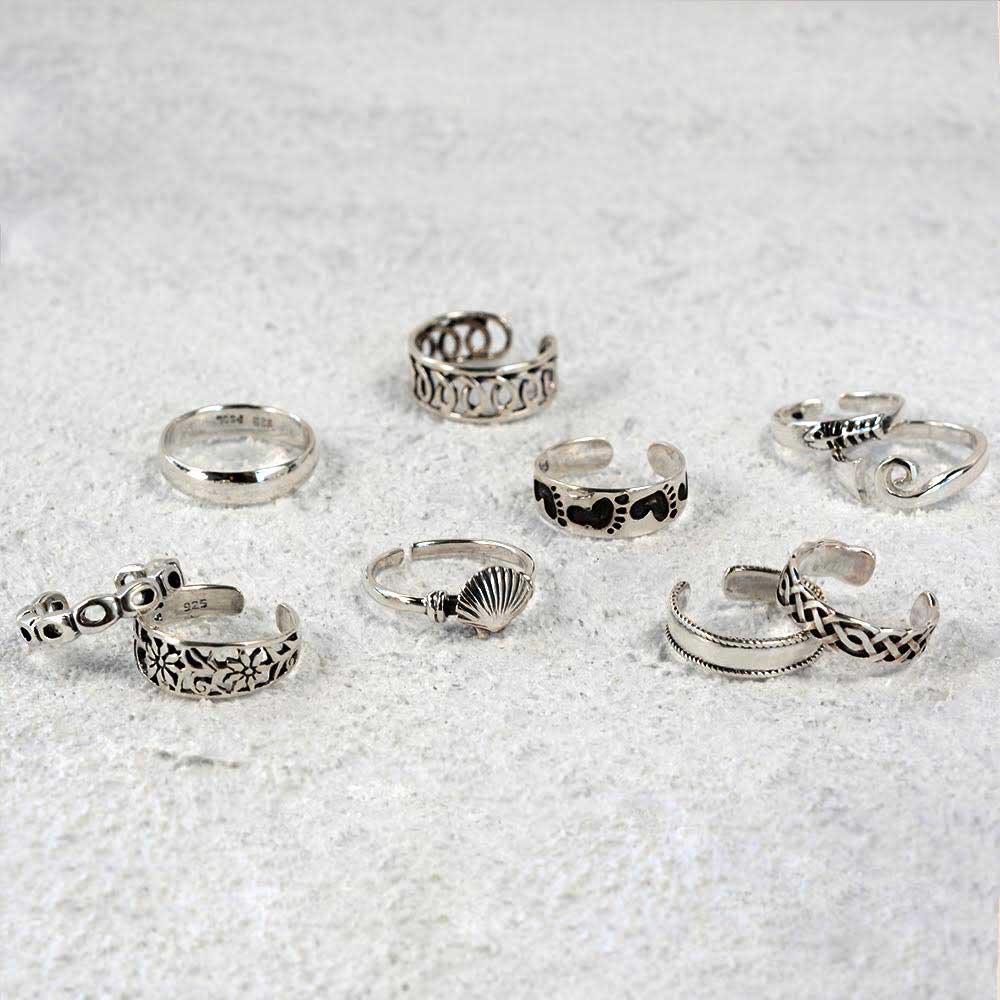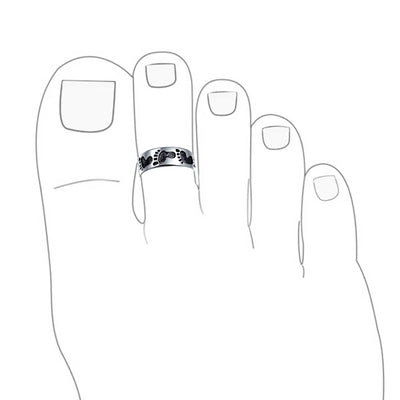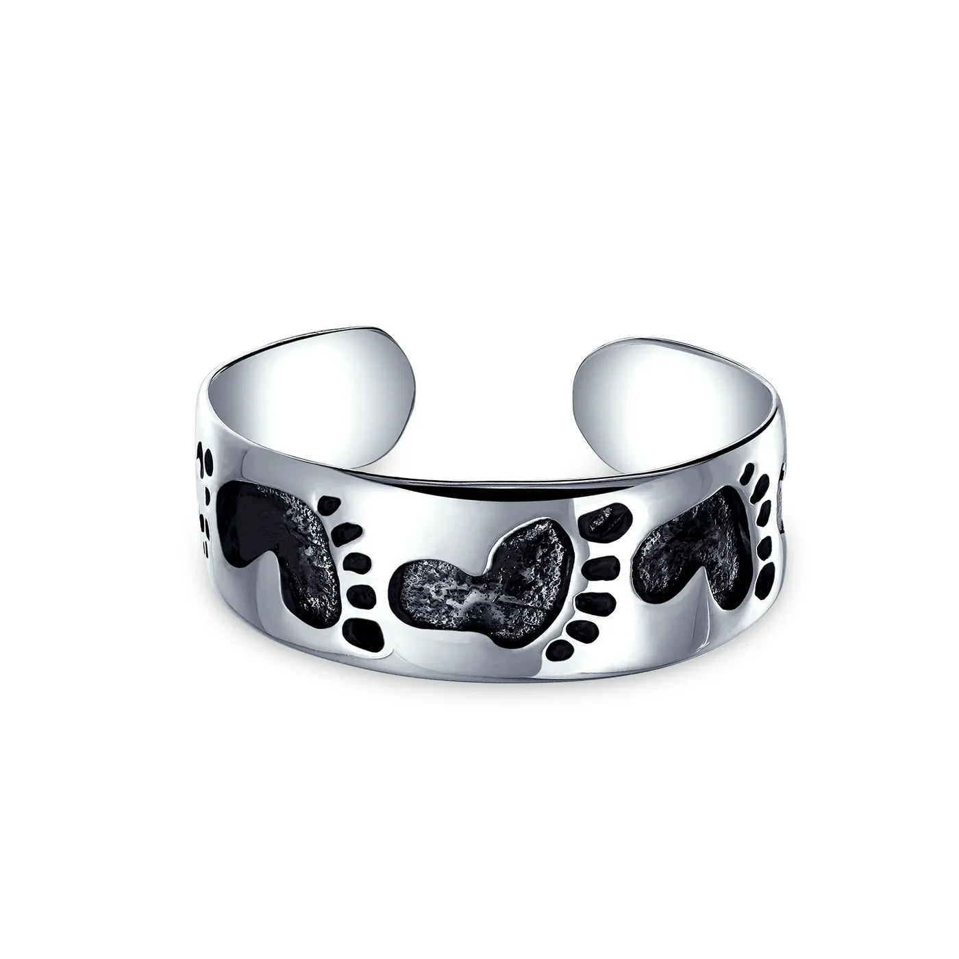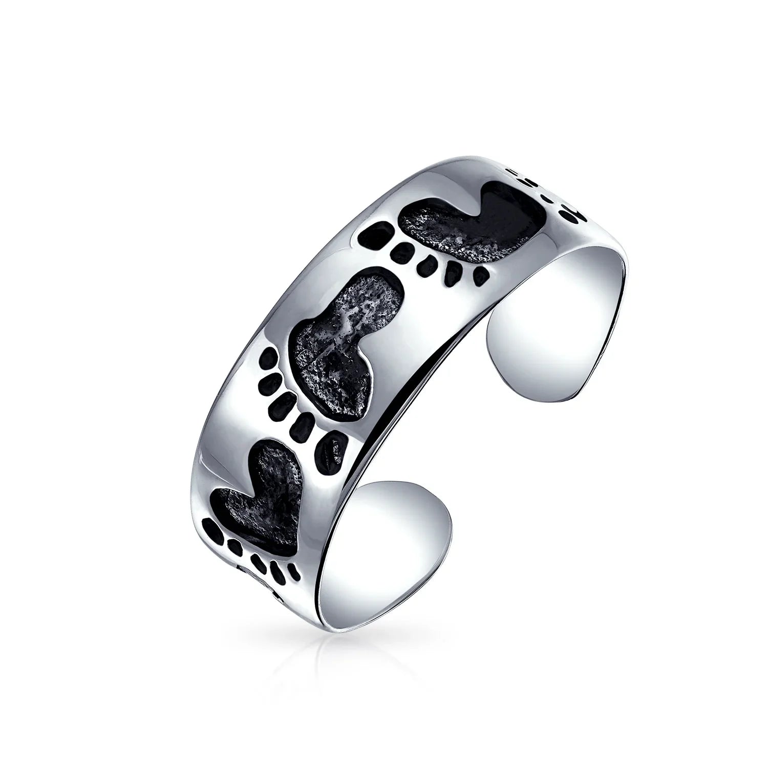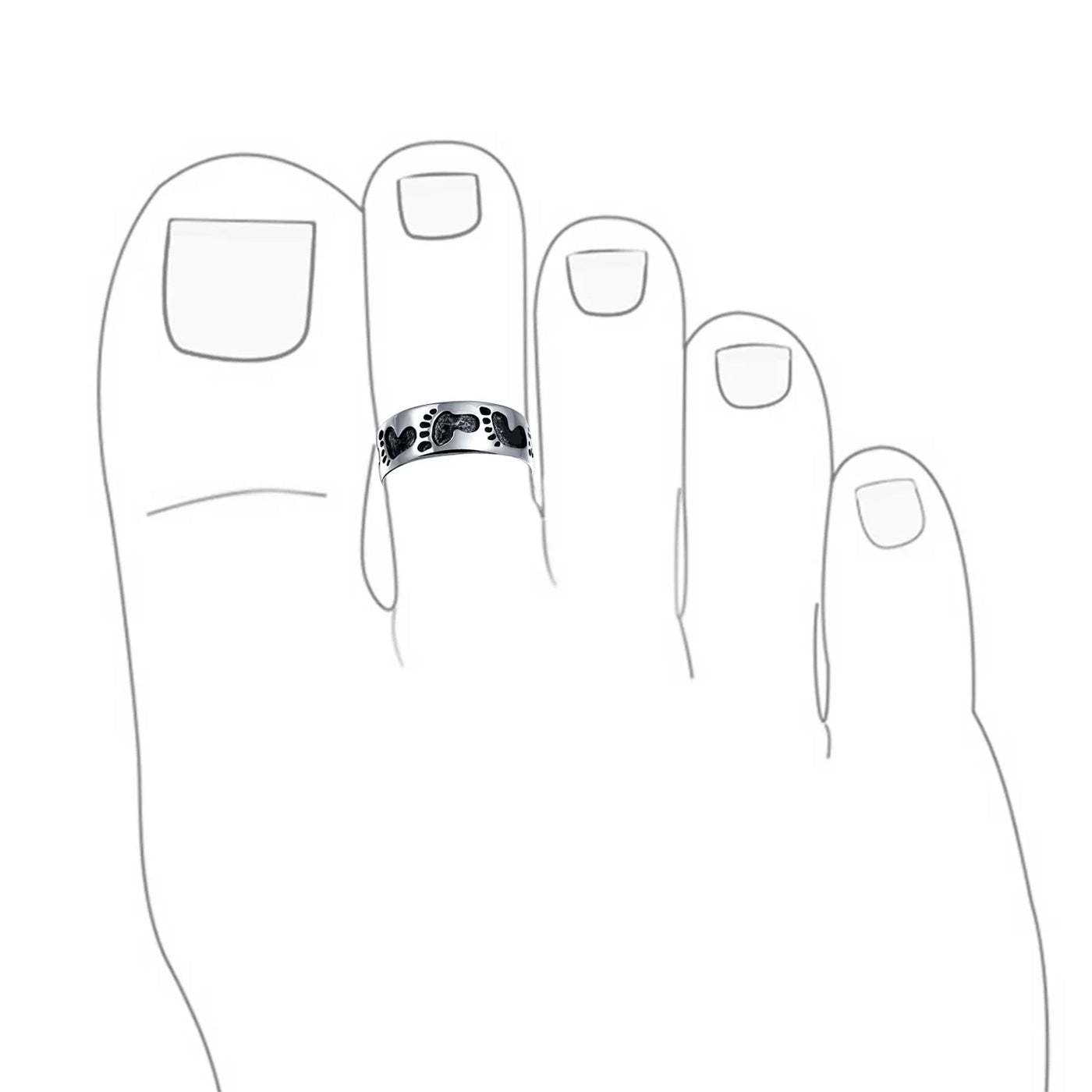 - Trendsetting and stylish, our sterling silver footprints toe ring is perfect for beachwear. Forefinger rings are a hot trend this season. Fun and pretty, our footprints midi ring adds glam to your wardrobe. This delicate mid-finger ring adjusts to fit above the first and second knuckles or on your toes. Perfect for adding bohemian style to your look. Adjusts easily to fit most finger sizes. Experiment with endless combinations on any finger or toe. Mix and match for a unique, personalized style. Stack them for a chic, boho look. Enhance your summer dress with this stunning beach jewelry piece.