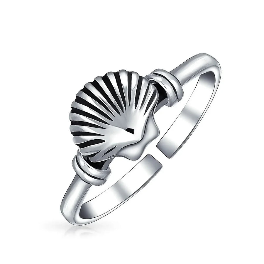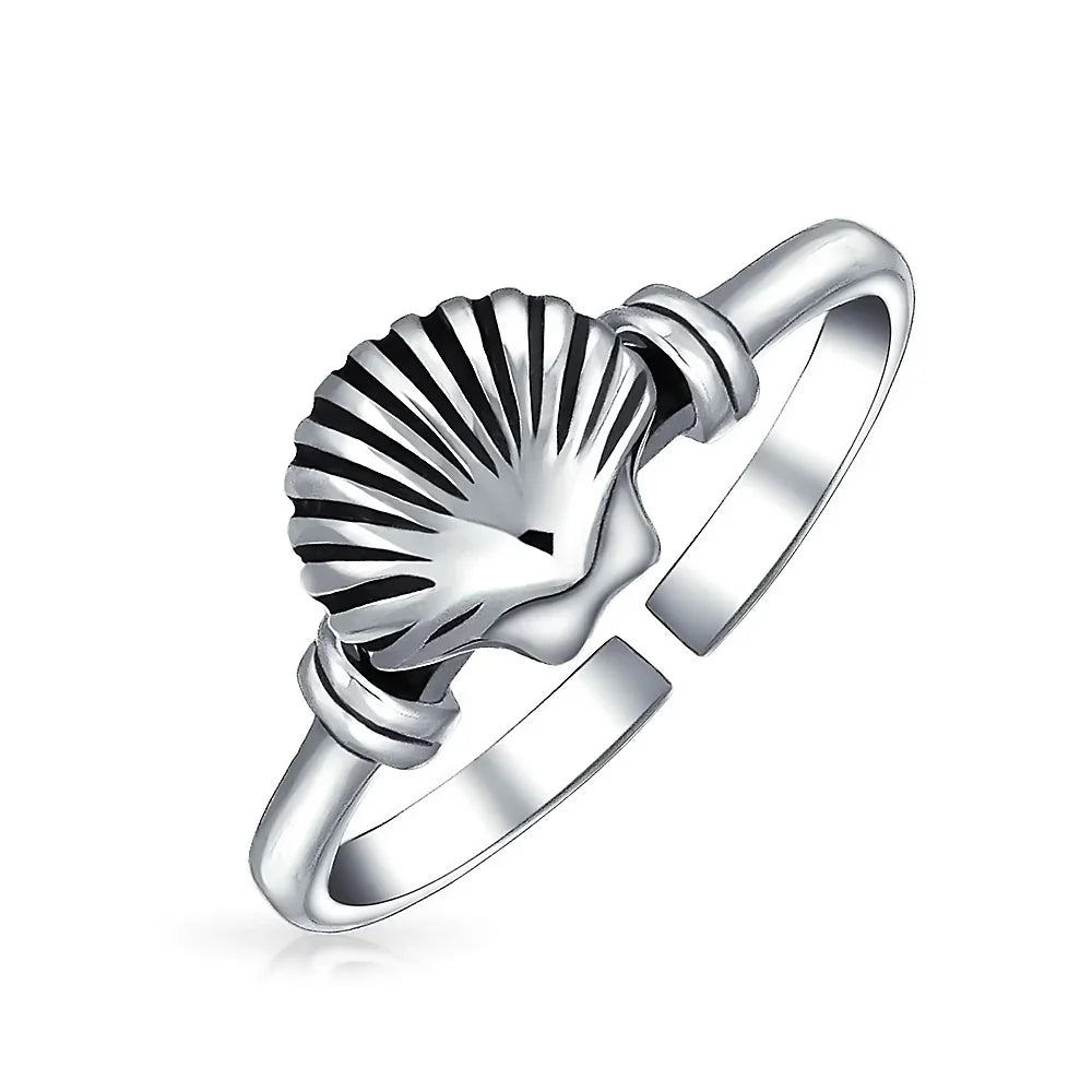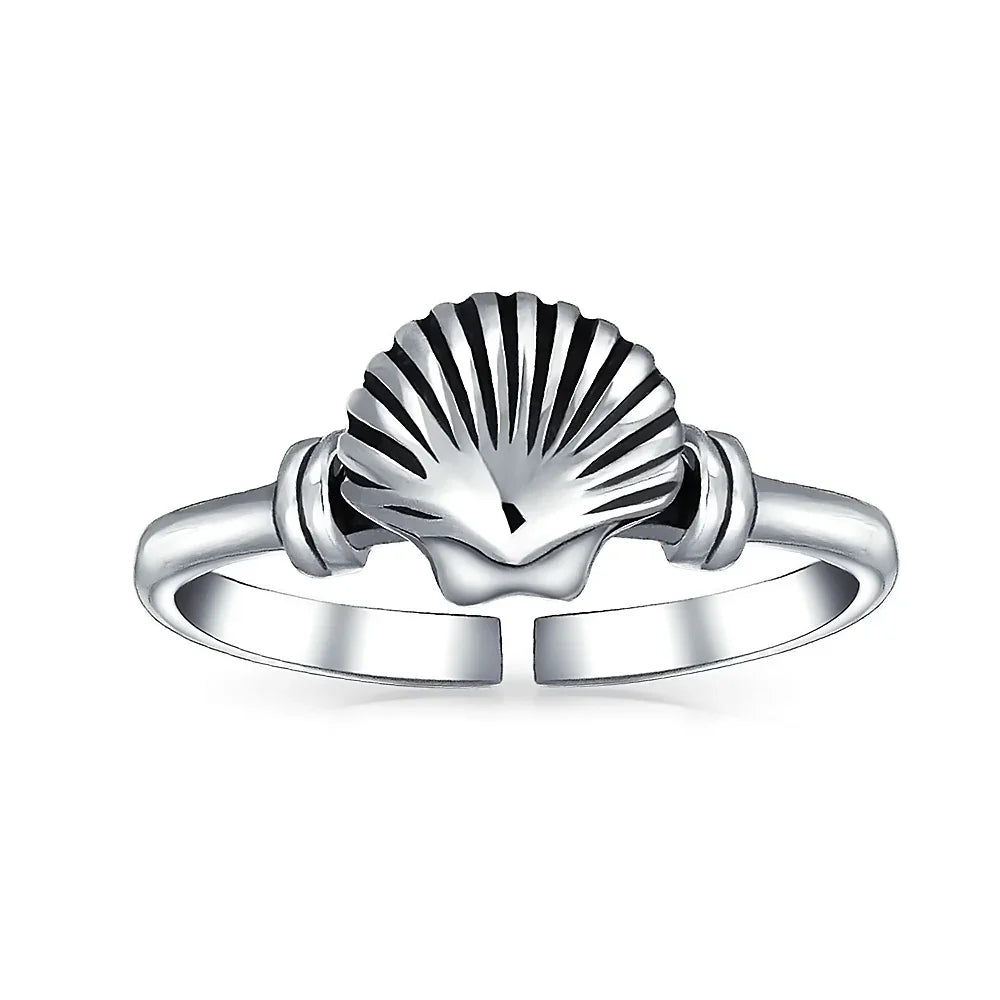 - Add a chic clam shell sterling silver midi ring to your accessories. Stay trendy and be the envy of your friends. nautical jewelry is always in style, expressing your unique fashion sense. This sterling silver body jewelry is a must-have accessory. Wear above the knuckle rings on multiple fingers for a stylish look. Perfect for dressing up any outfit, day or night. Browse our website for adjustable toe rings to complete your look.