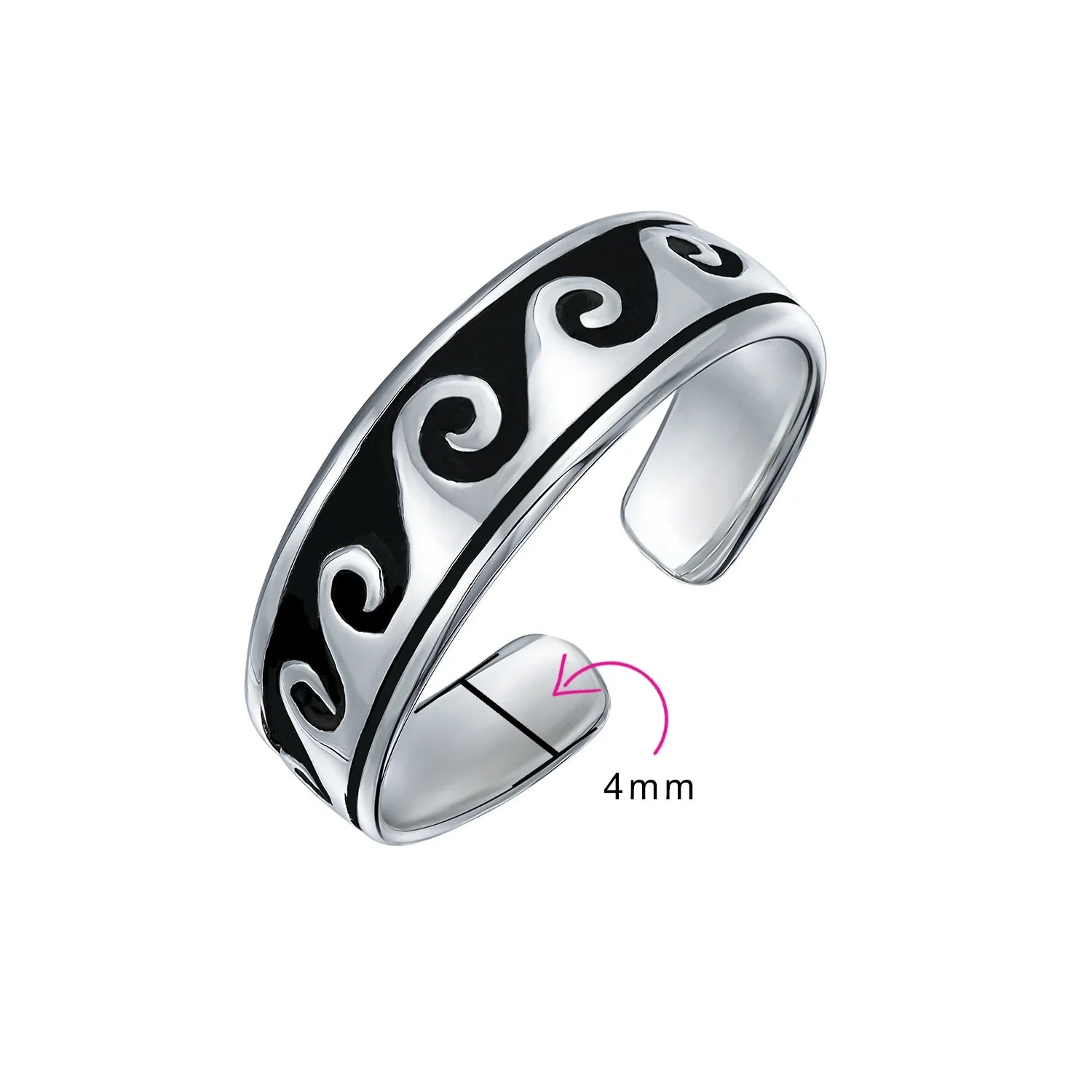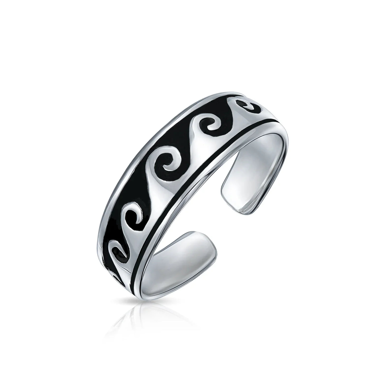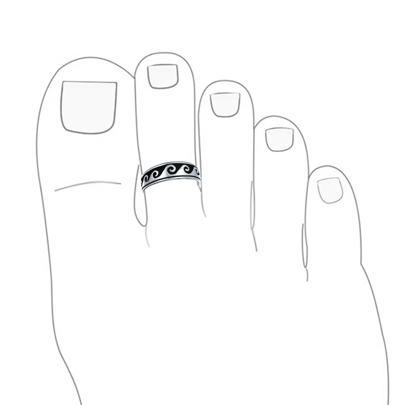 - Show off your feet with a super cute sterling silver toe ring at the beach. Boasting a band of waves, our silver wave mid finger ring will get you in the mood for the ocean. This versatile oxidized beach jewelry can also be worn as a midi finger ring or on your pinky. Stack our adorable sterling silver rings for a Boho chic style that's on trend. The oxidized look enhances the ocean wave design on the sterling silver ring. These adjustable rings fit most finger and toe sizes with a gentle press. Have fun and wear them differently each time.
