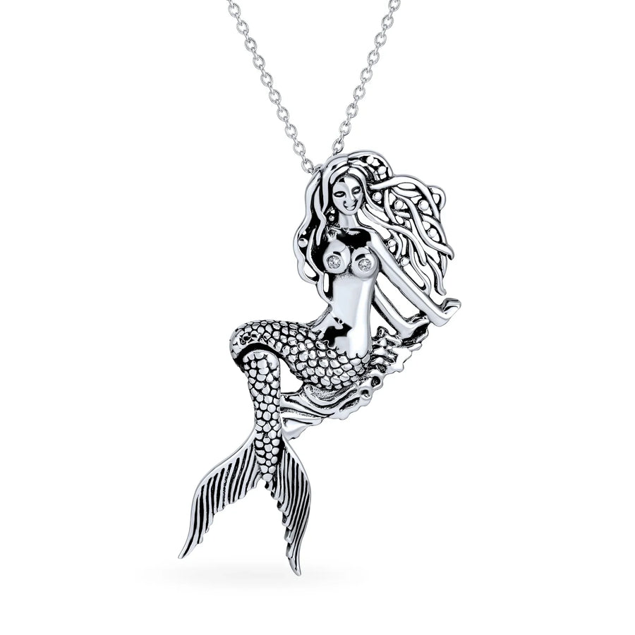 - Enhance your Celtic jewelry collection with our .925 Sterling Silver crystal mermaid pendant. Featuring intricate oxidized silver detailing and a moveable tail, this Celtic sea pendant is a true standout. Perfect for sea lovers and fans of mythical women. Our .925 Sterling Silver mermaid necklace is exquisitely detailed, capturing the mermaid's graceful spirit. Pair with other nautical jewelry for a fun, stylish look. At Bling Jewelry, shop to express your unique style. Enjoy fashion with our newest .925 Sterling Silver nautical pendant necklace.