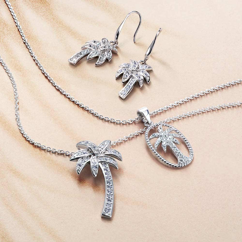 - Shine beachy and chic with our Silver CZ Palm Tree Ankle Bracelet. Crafted from high-polished .925 sterling silver, it features a dazzling palm tree charm. The charm is encrusted with clear cubic zirconia stones in a pave setting. Set on a stylish rolo chain with a secure lobster clasp. Feel like an island princess with this fashionable, affordable anklet. Stand out from the crowd with this lovely CZ Ankle Bracelet. Fits up to a 10-inch ankle, perfect for summer or any occasion. Ideal gift for beach lovers or anyone on your holiday list.