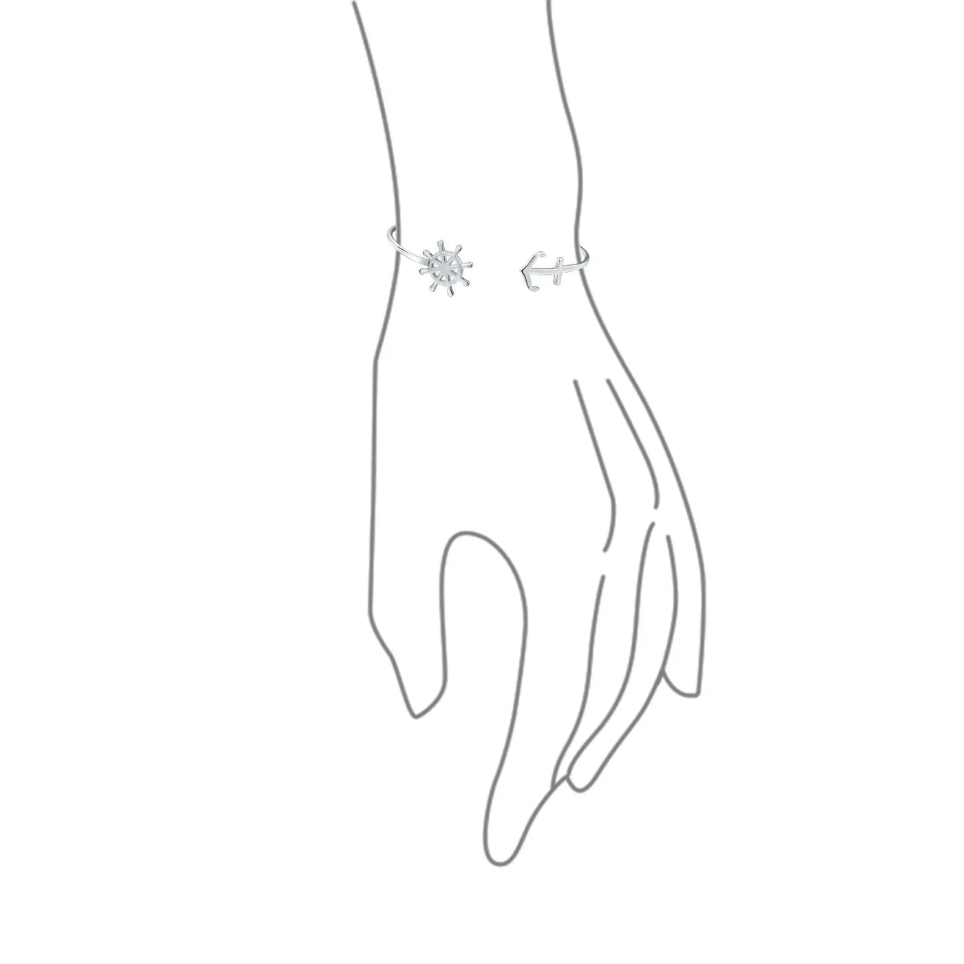 - Navigate fashion with this stunning open cuff bracelet , featuring a nautical ship wheel and anchor motif. Crafted in lustrous sterling silver, these maritime symbols represent steadfast values as we sail through life's tides.