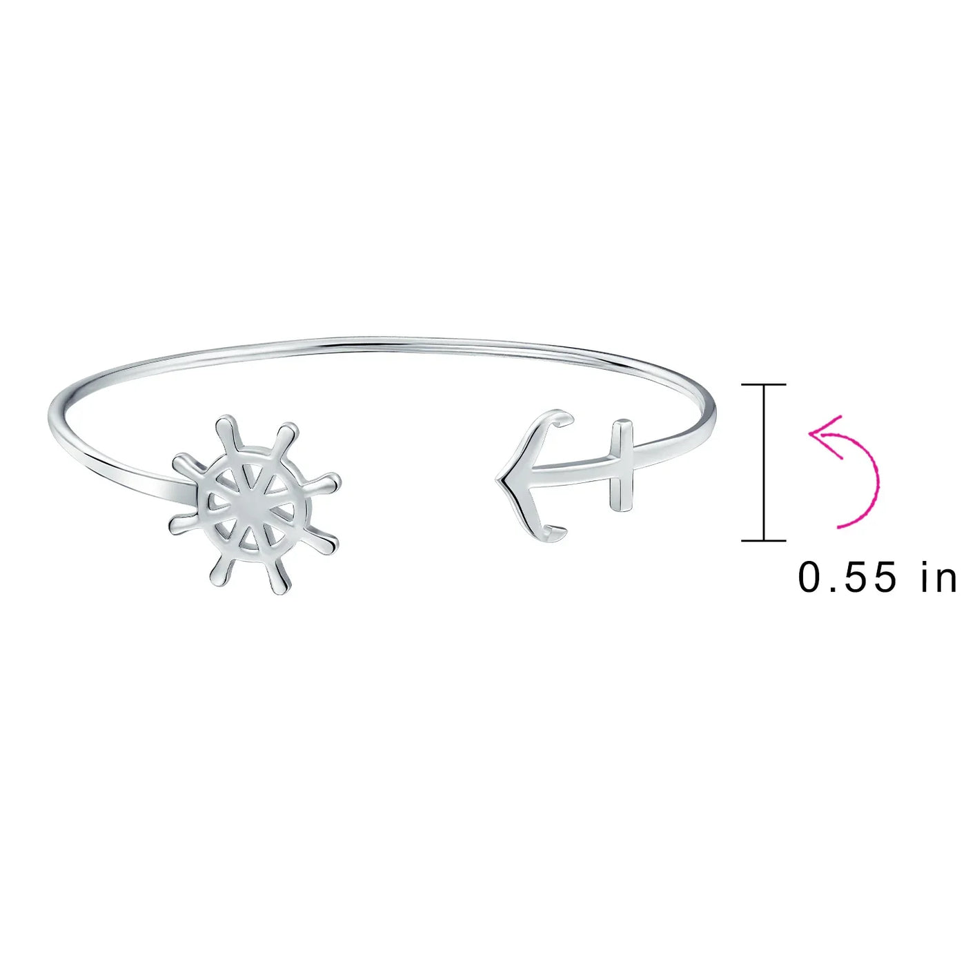 - Sail the seas of fashion with this beautifully designed, open cuff bracelet featuring a motif duo of a nautical ship wheel and anchor. HYPOALLERGENIC – Lead-free Nickle-free. Each piece is stamped .925 guarantees the quality and craftmanship.