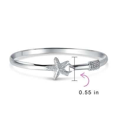 Nautical Starfish Bangle Bracelet in Sterling Silver with Eye Hook Clasp - Bling Jewelry