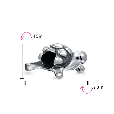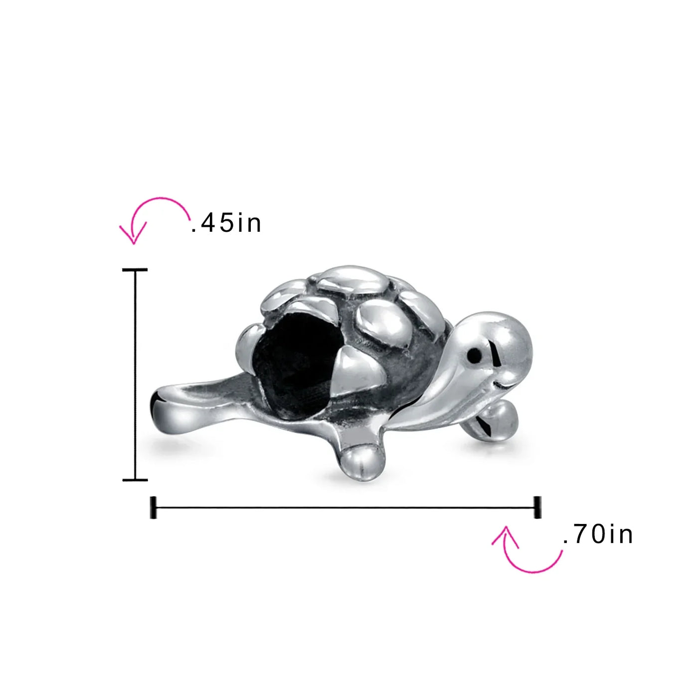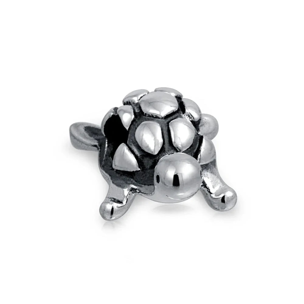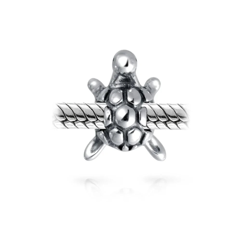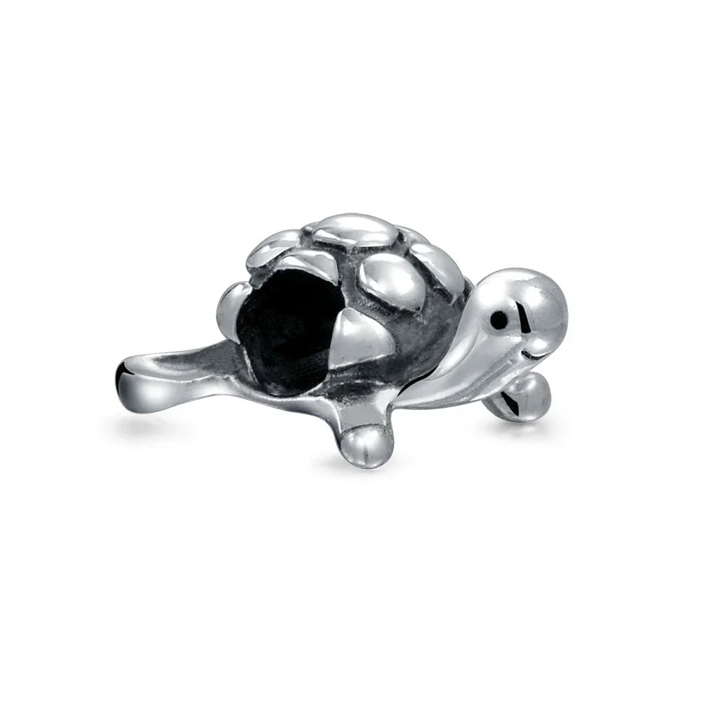 - Add a cute sterling silver turtle bead to your bracelet for a whimsical vibe and extra smile. Crafted from 925 sterling silver with oxidized accents, it boasts detailed character. Perfect ocean jewelry for sunny vacations, it enhances any unique story bracelet. Symbolizing good luck, this nautical charm is ideal for extra fortune. Slow and steady wins the fashion race with this adorable sea creature. Perfect for ocean, sea, or beach-themed bracelets. Bead core measures 5mm.