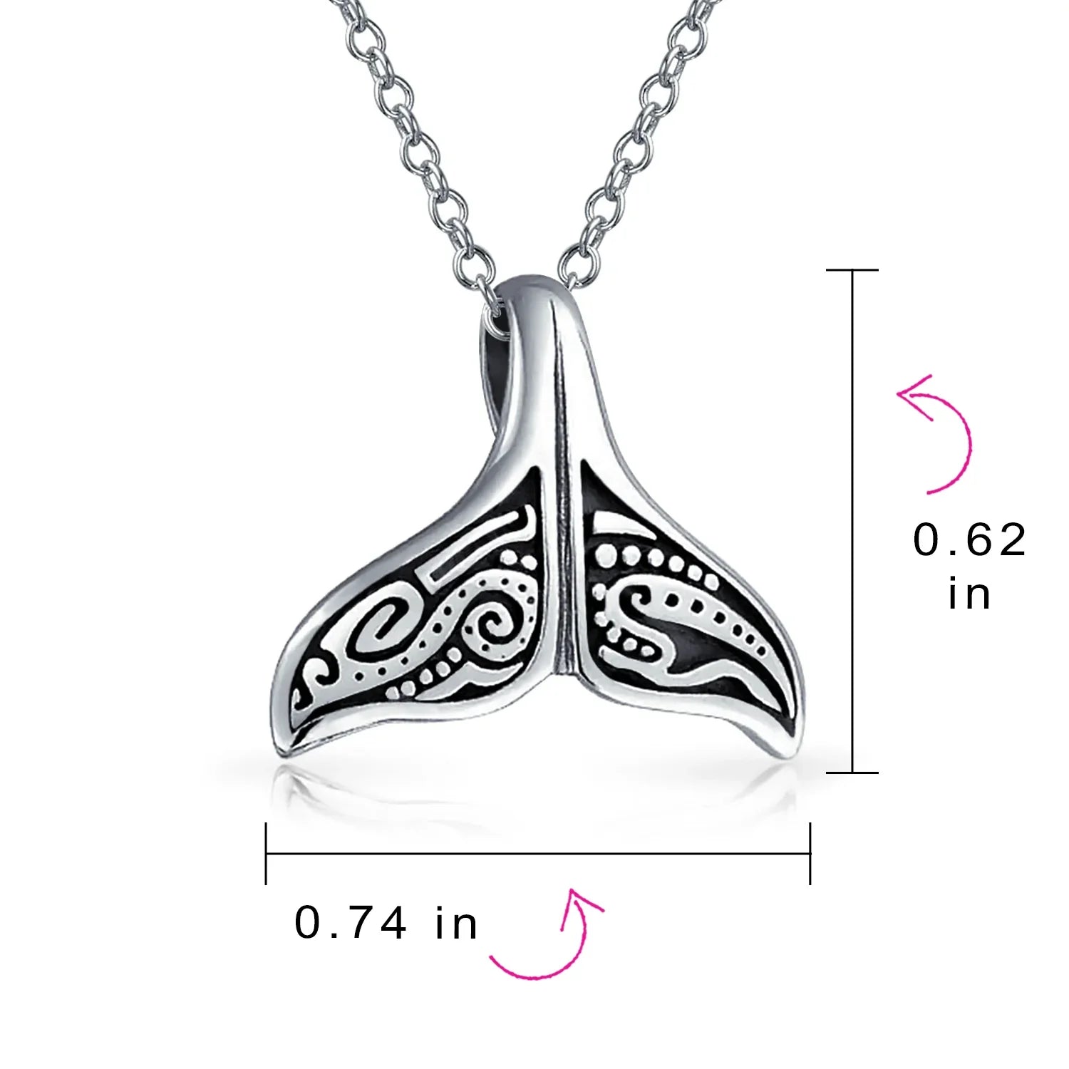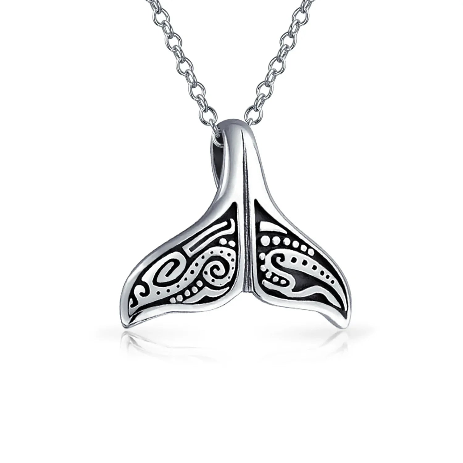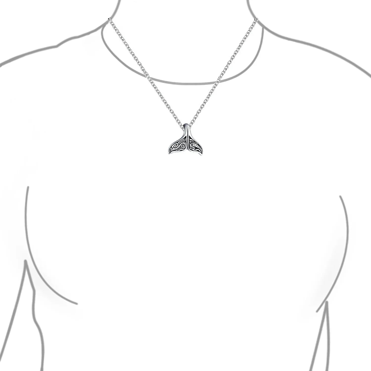 - Elevate your style with our .925 Sterling Silver nautical whale pendant. Celebrate majestic sea creatures with this unique tribal whale tail design. Perfect for any nautical-themed jewelry collection. An affordable Celtic pendant, ideal for whale lovers. Comes with a rolo chain for easy wear.